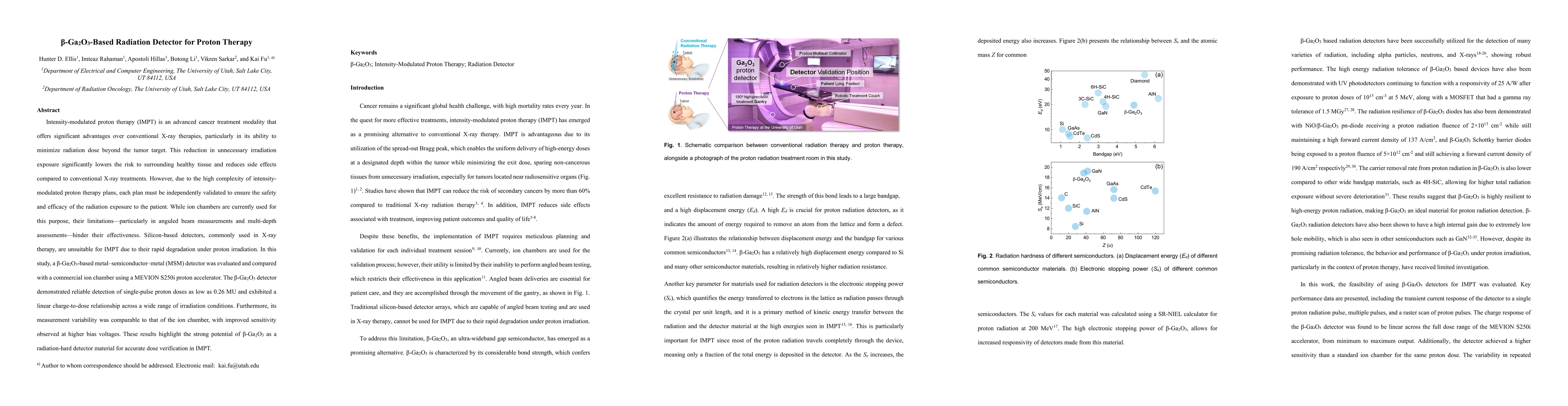 Intensity modulated proton therapy (IMPT) is an advanced cancer treatment modality that offers significant advantages over conventional X-ray therapies, particularly in its ability to minimize radiation dose beyond the tumor target. This reduction in unnecessary irradiation exposure significantly lowers the risk to surrounding healthy tissue and reduces side effects compared to conventional X-ray treatments. However, due to the high complexity of IMPT plans, each plan must be independently validated to ensure the safety and efficacy of the radiation exposure to the patient. While ion chambers are currently used for this purpose, their limitations-particularly in angled-beam measurements and multi-depth assessments-hinder their effectiveness. Silicon-based detectors, commonly used in X-ray therapy, are unsuitable for IMPT due to their rapid degradation under proton irradiation. In this study, a $\beta$-Ga$_2$O$_3$-based metal-semiconductor-metal (MSM) detector was evaluated and compared with a commercial ion chamber using a MEVION S250i proton accelerator. The $\beta$-Ga$_2$O$_3$ detector demonstrated reliable detection of single-pulse proton doses as low as 0.26 MU and exhibited a linear charge-to-dose relationship across a wide range of irradiation conditions. Furthermore, its measurement variability was comparable to that of the ion chamber, with improved sensitivity observed at higher bias voltages. These results highlight the strong potential of $\beta$-Ga$_2$O$_3$ as a radiation-hard detector material for accurate dose verification in IMPT.