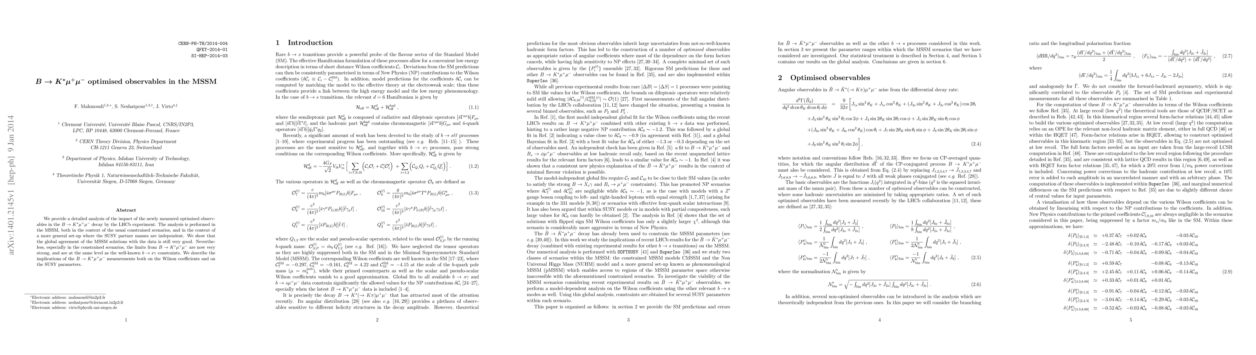 New measurements of B -> K* mu+ mu- decay confirm global agreement with MSSM solutions, with strong limits set on SUSY parameters, rivalling b -> s gamma constraints.