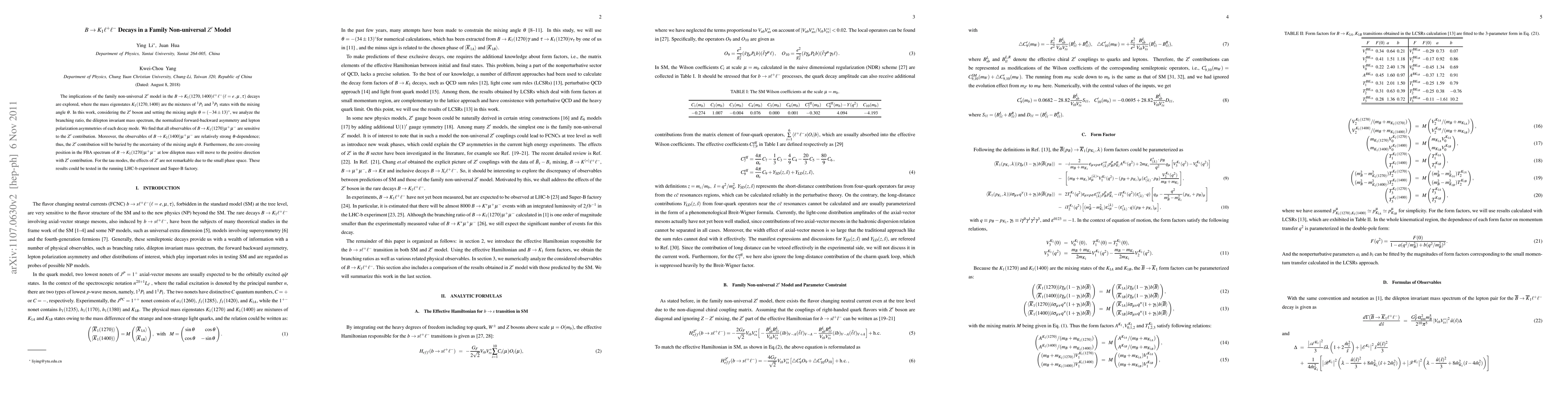 This paper explores the effects of a family non-universal $Z^\prime$ model on $B\to K_{1}(1270,1400)\ell^{+}\ell^{-}$ decays, finding significant $Z^\prime$ sensitivity in $B\to K_{1}(1270)\mu^{+}\mu^{-}$ observables, while $B\to K_{1}(1400)\mu^{+}\mu^{-}$ results are affected by the mixing angle uncertainty. The study suggests potential experimental tests at LHC-b and Super-B factory.
