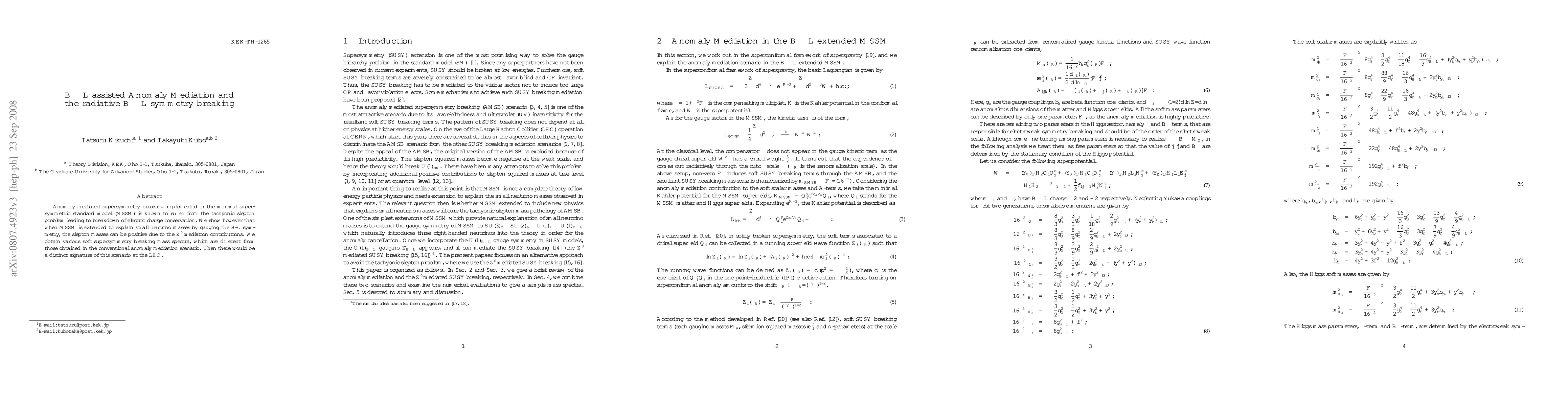 This paper explores anomaly mediation in the context of supersymmetry breaking within the MSSM, showing that gauging B-L symmetry can resolve the tachyonic slepton problem and lead to positive slepton masses. It predicts distinct LHC signatures for this radiative B-L symmetry breaking scenario.