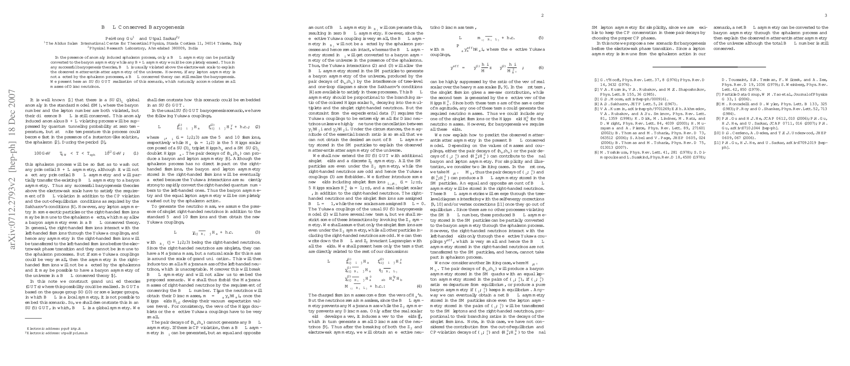 This paper explores a B-L conserved baryogenesis mechanism in an SU(5) GUT model where lepton asymmetry bypasses sphaleron processes, allowing for the generation of the observed matter-antimatter asymmetry without violating B-L symmetry above the electroweak scale. It also naturally accommodates small Dirac neutrino masses.