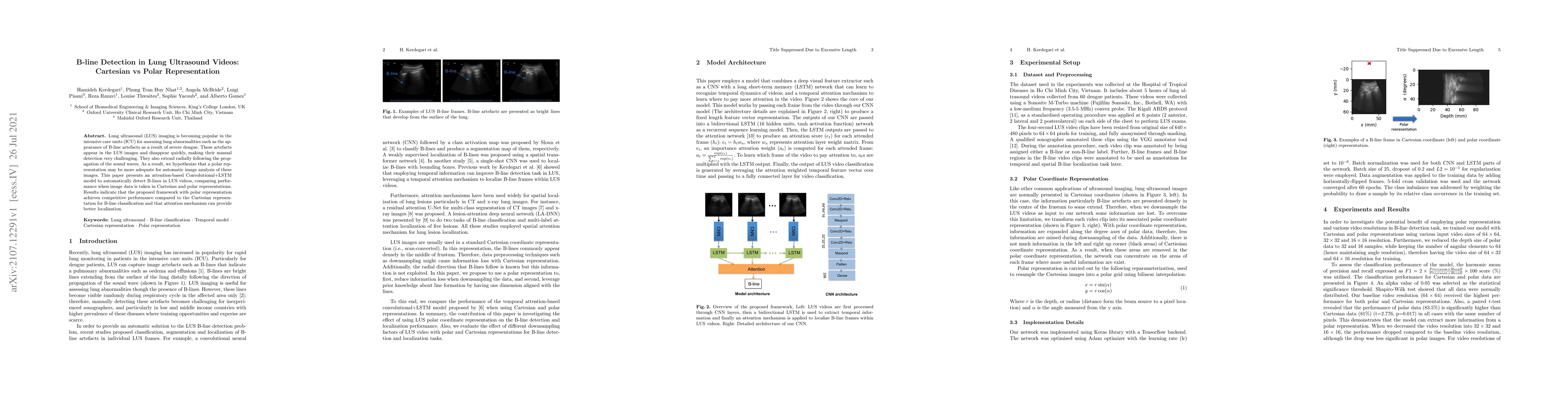 This paper proposes an attention-based Convolutional+LSTM model to automatically detect B-lines in lung ultrasound videos, comparing Cartesian and polar representations. Results show that the polar representation, along with the attention mechanism, achieves better B-line classification and localization compared to the Cartesian approach.