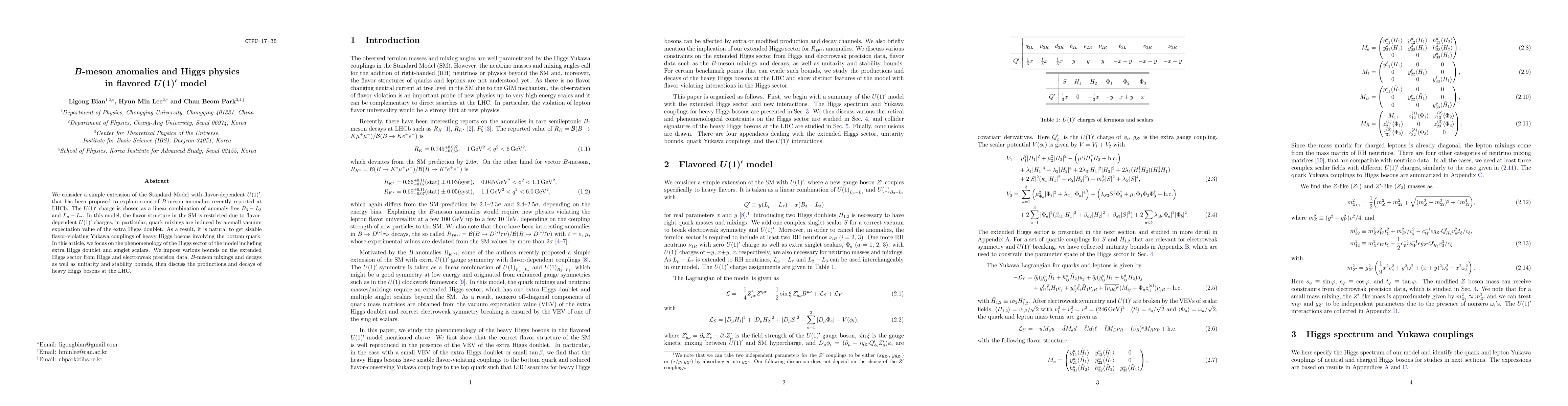 This paper explores a $U(1)'$ extension of the Standard Model to address $B$-meson anomalies, introducing flavor-dependent charges and an extra Higgs doublet that induces quark mixings. The study focuses on the Higgs sector phenomenology, imposing constraints from various experimental data and discussing heavy Higgs production and decay at the LHC.