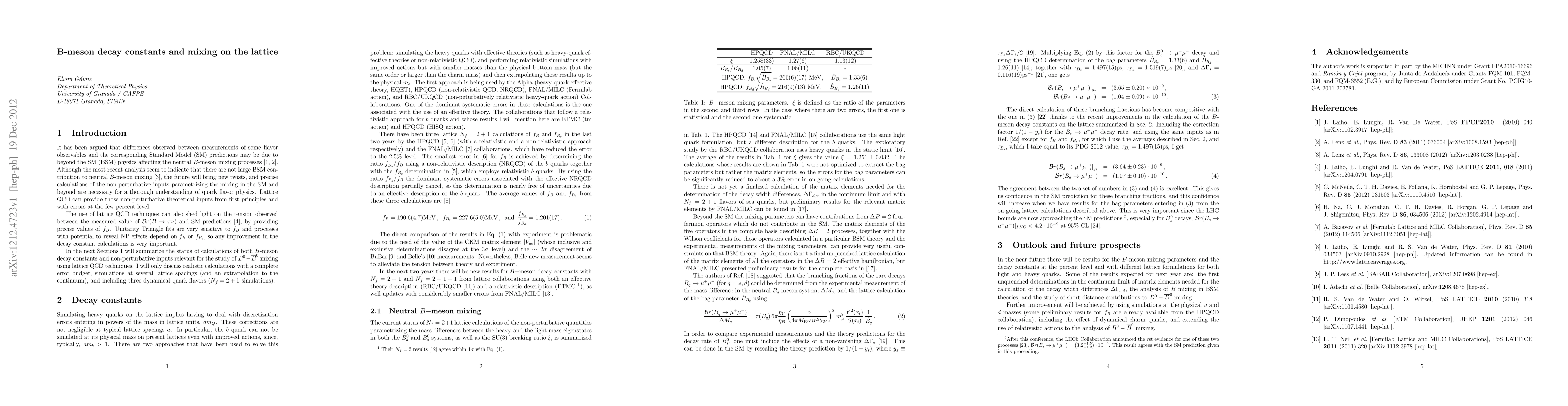 This paper reviews current and future lattice QCD calculations for B-meson decay constants and neutral B-meson mixing, emphasizing non-perturbative inputs. It also discusses Standard Model predictions for specific decay rates involving muons.