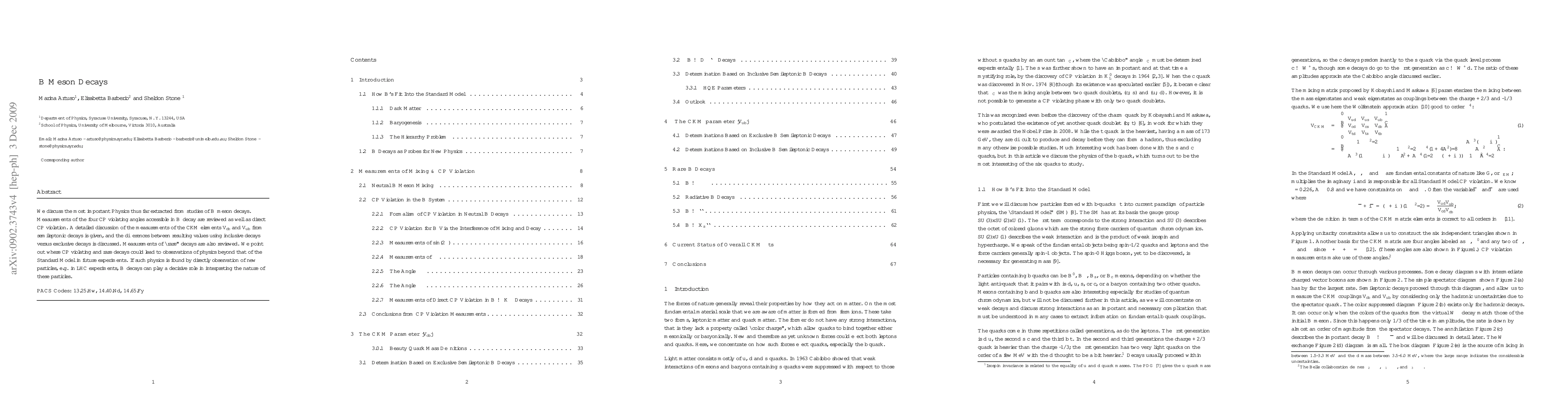 This paper reviews the significant physics findings from B meson decay studies, focusing on CP violation angles, direct CP violation, and measurements of CKM matrix elements V_{cb} and V_{ub}. It highlights potential future observations of physics beyond the Standard Model through rare decays and the role of B meson decays in interpreting new particles discovered at the LHC.