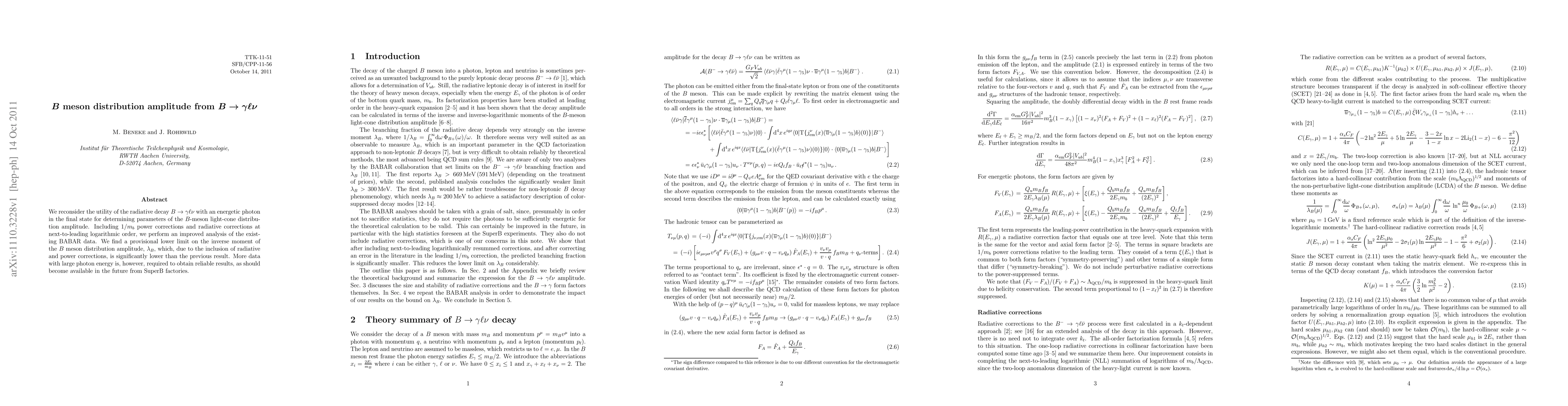 Researchers reanalyzed data from the BABAR experiment to determine the light-cone distribution amplitude of B mesons using the radiative decay $B o rac{ ext{γ}}{ ext{eν}}$, finding a lower limit on $rac{1}{ ext{λ}_B}$ that is significantly improved over previous results, but requires further data for reliable conclusions.