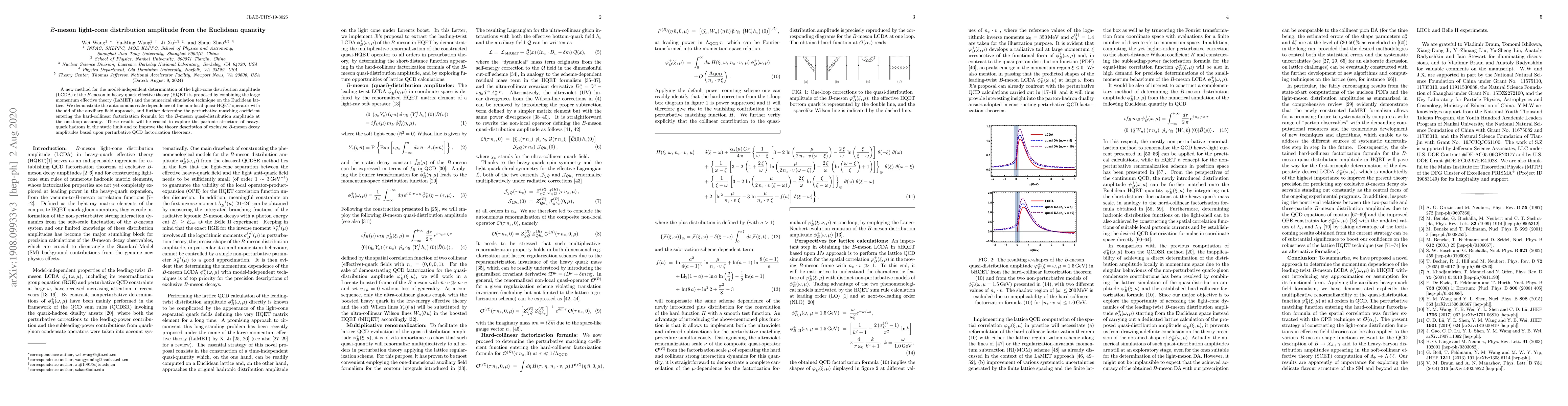 A new method for the model-independent determination of the light-cone distribution amplitude (LCDA) of the $B$-meson in heavy quark effective theory (HQET) is proposed by combining the large momentum effective theory (LaMET) and the numerical simulation technique on the Euclidean lattice. We demonstrate the autonomous scale dependence of the non-local quasi-HQET operator with the aid of the auxiliary field approach, and further determine the perturbative matching coefficient entering the hard-collinear factorization formula for the $B$-meson quasi-distribution amplitude at the one-loop accuracy. These results will be crucial to explore the partonic structure of heavy-quark hadrons in the static limit and to improve the theory description of exclusive $B$-meson decay amplitudes based upon perturbative QCD factorization theorems.