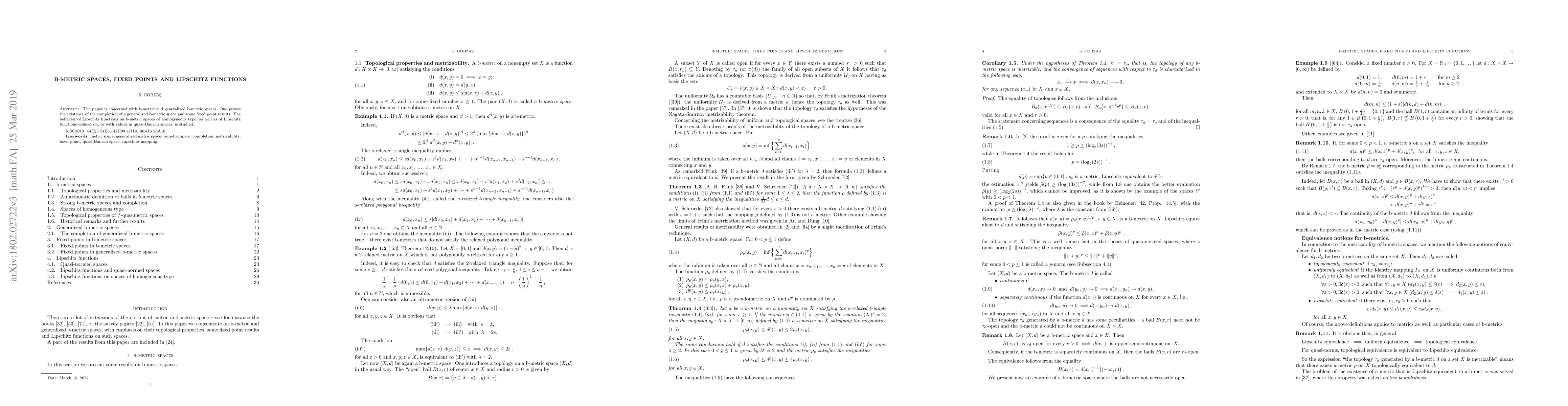 This paper explores b-metric and generalized b-metric spaces, proving the completion of generalized b-metric spaces and establishing fixed point results. It also investigates the behavior of Lipschitz functions in these spaces and in quasi-Banach spaces.
