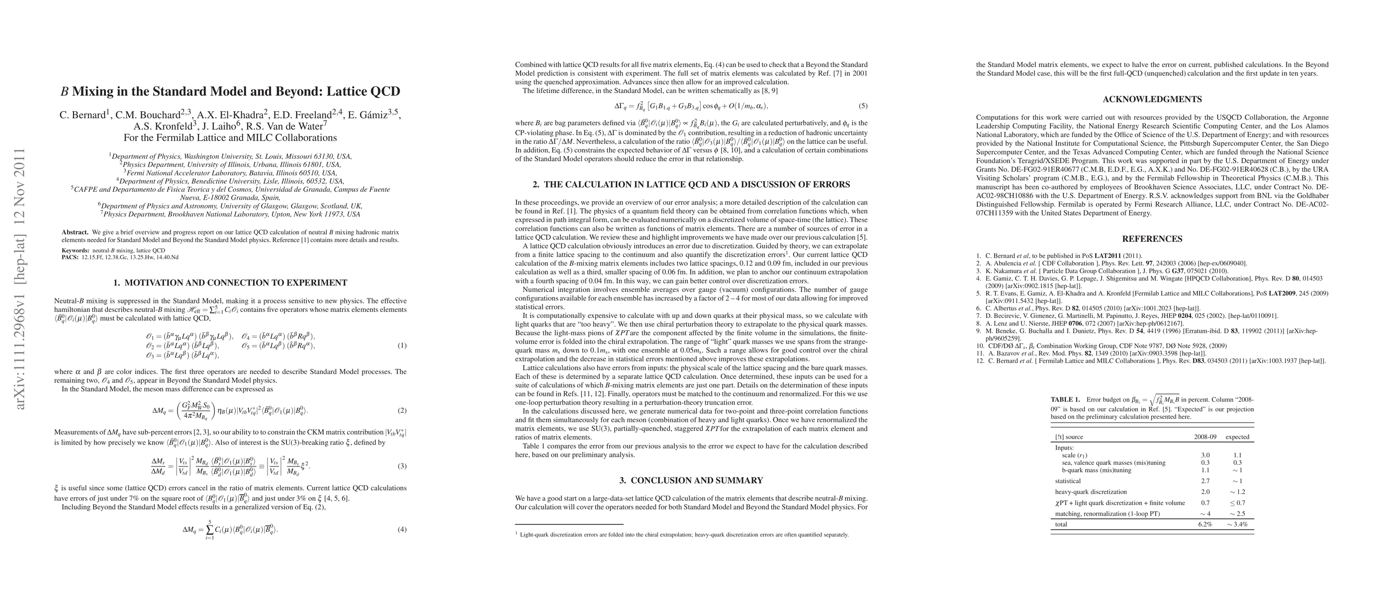 This paper provides an overview of lattice QCD calculations for neutral B mixing hadronic matrix elements, crucial for both Standard Model and Beyond the Standard Model physics. For detailed results, reference [1] is recommended.