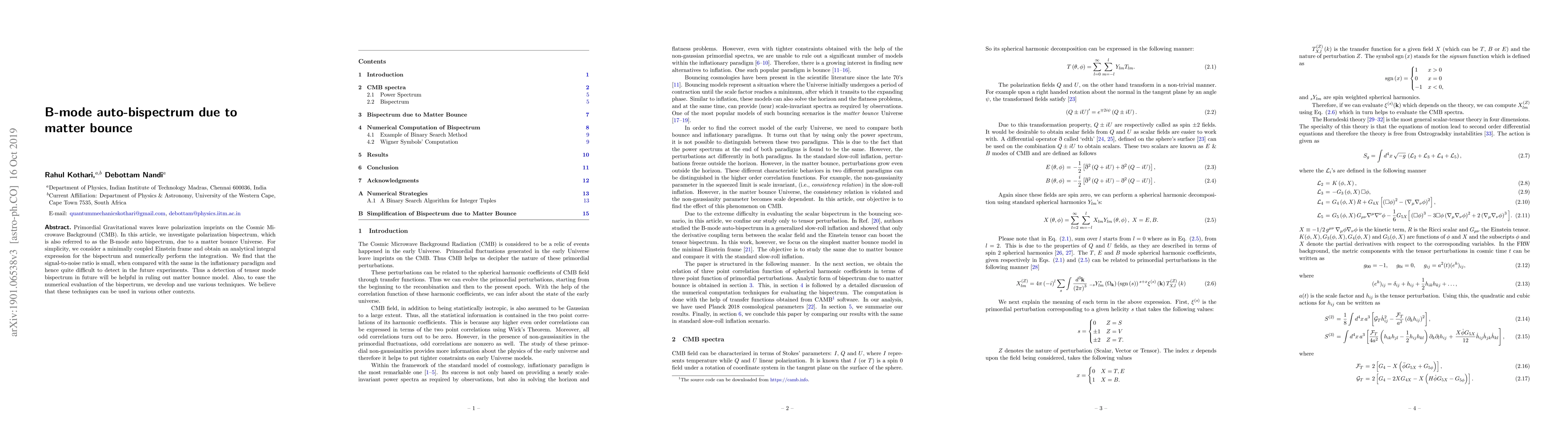 Researchers investigated B-mode auto-bispectrum signals in a matter bounce Universe, finding them difficult to detect due to low signal-to-noise ratios, but proposed techniques for future detection could help rule out the model.