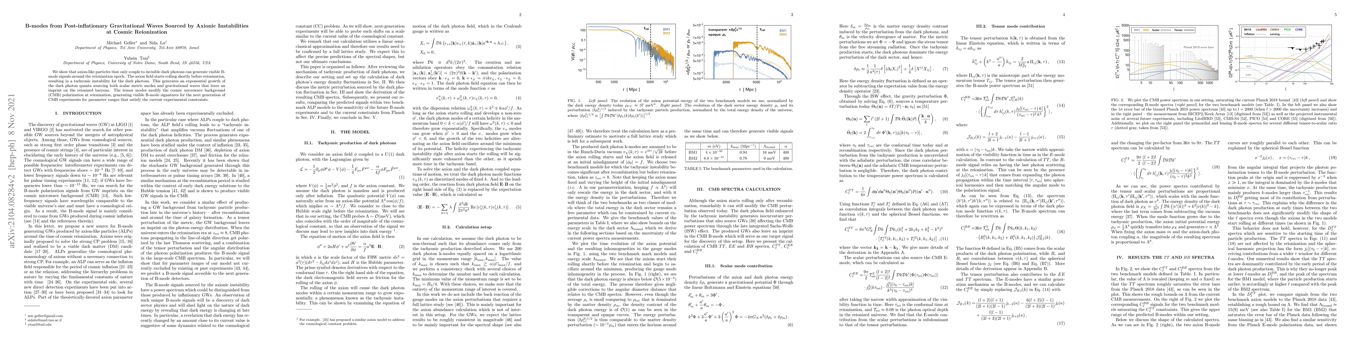 We show that axion-like particles that only couple to invisible dark photons can generate visible B-mode signals around the reionization epoch. The axion field starts rolling shortly before reionization, resulting in a tachyonic instability for the dark photons. This generates an exponential growth of the dark photon quanta sourcing both scalar metric modes and gravitational waves that leave an imprint on the reionized baryons. The tensor modes modify the cosmic microwave background (CMB) polarization at reionization, generating visible B-mode signatures for the next generation of CMB experiments for parameter ranges that satisfy the current experimental constraints.
