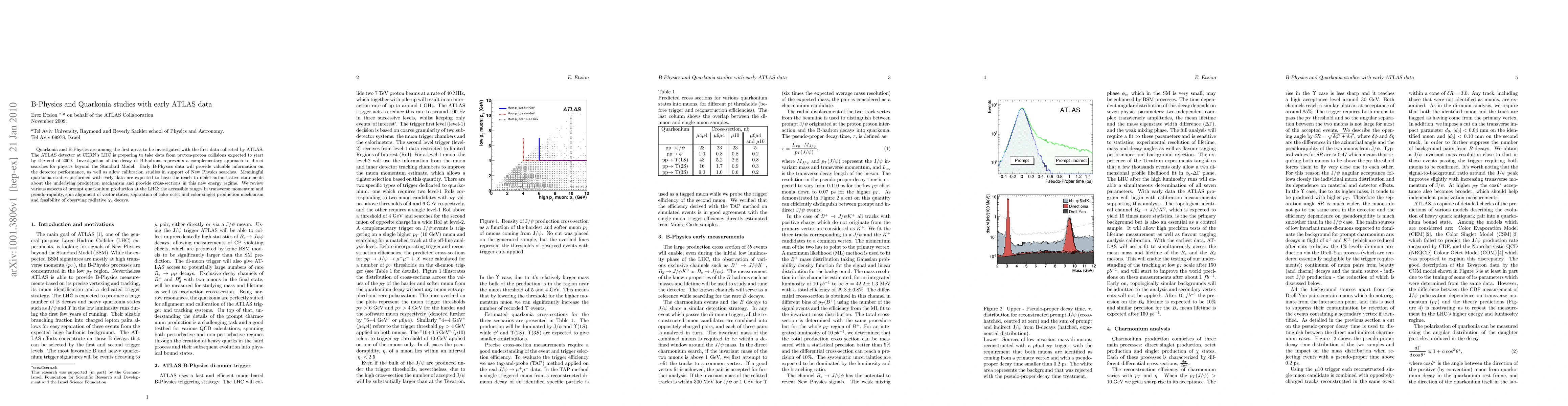 This paper reviews early ATLAS data studies on quarkonia and B-physics, focusing on the production mechanisms and decay of B-hadrons, which complement searches for Physics beyond the Standard Model. It also discusses the potential of early quarkonia data to provide insights into production dynamics and cross-sections at the LHC.