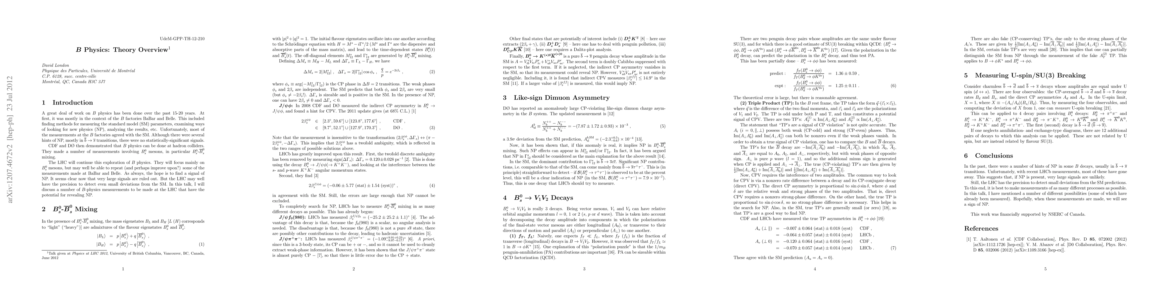 This is an overview of B physics that can be done at the LHC with the purpose of searching for new physics.