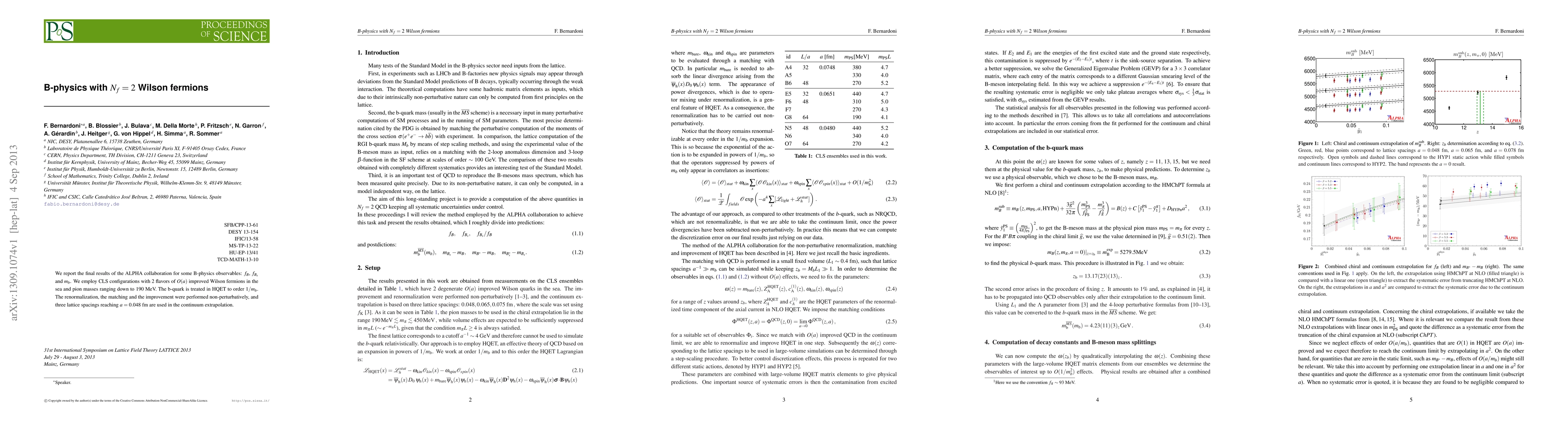 Researchers from the ALPHA collaboration have presented final results for B-physics observables using 2 flavors of Wilson fermions, achieving precision measurements with three lattice spacings.