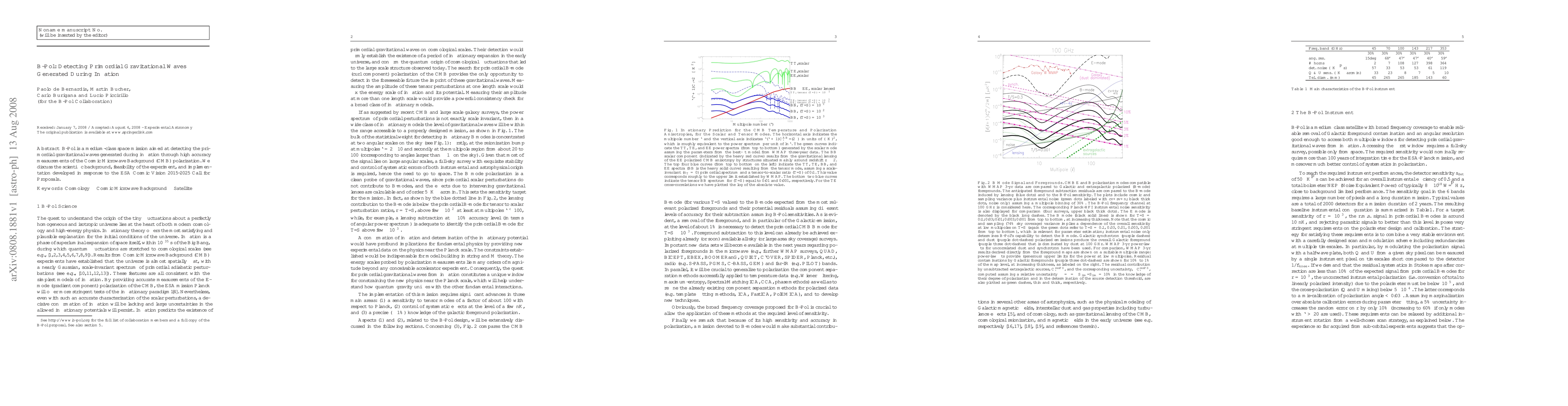 The research proposes a medium-class space mission, B-Pol, to detect primordial gravitational waves generated during inflation by measuring the Cosmic Microwave Background (CMB) polarization with high accuracy.