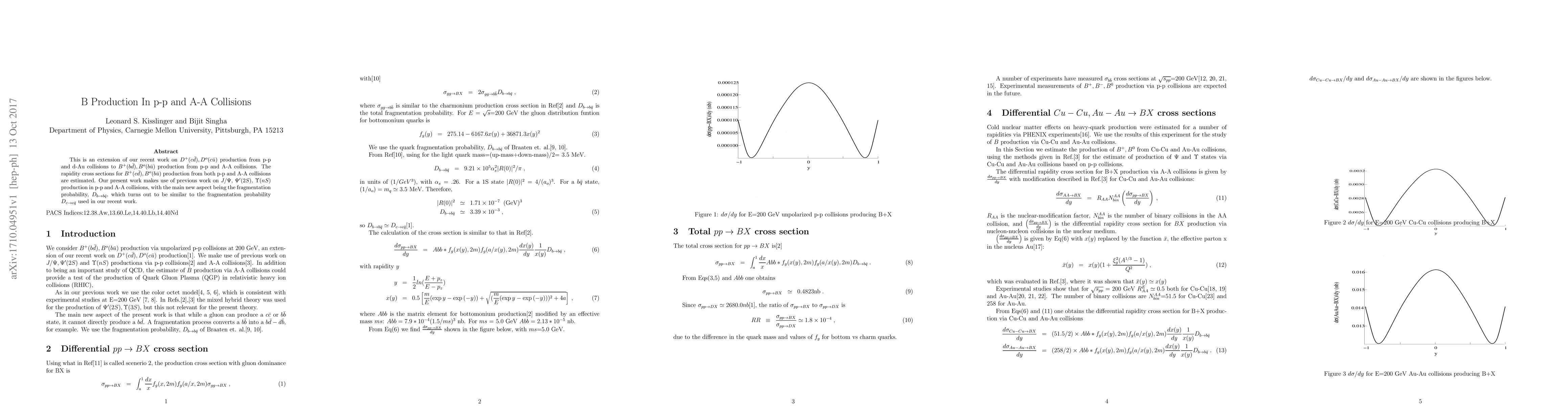 This is an extension of our recent work on $D^+(c\bar{d}),D^o(c\bar{u})$ production from p-p and d-Au collisions to $B^+(b\bar{d}),B^o(b\bar{u})$ production from p-p and A-A collisions. The rapidity cross sections for $B^+(c\bar{d}),B^o(b\bar{u})$ production from both p-p and A-A collisions are estimated. Our present work makes use of previous work on $J/\Psi$, $\Psi'(2S)$, $\Upsilon(nS)$ production in p-p and A-A collisions, with the main new aspect being the fragmentation probability, $D_{b \rightarrow b\bar{q}}$, which turns out to be similar to the fragmentation probability $D_{c \rightarrow c\bar{q}}$ used in our recent work.