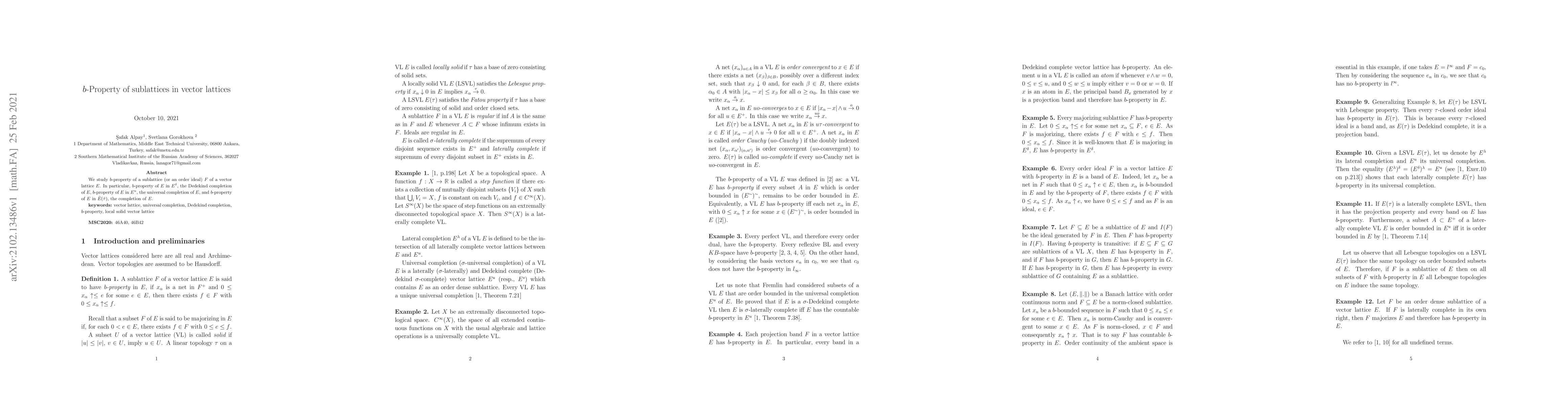 We study $b$-property of a sublattice (or an order ideal) $F$ of a vector lattice $E$. In particular, $b$-property of $E$ in $E^\delta$, the Dedekind completion of $E$, $b$-property of $E$ in $E^u$, the universal completion of $E$, and $b$-property of $E$ in $\hat{E}(\hat{\tau})$, the completion of $E$.