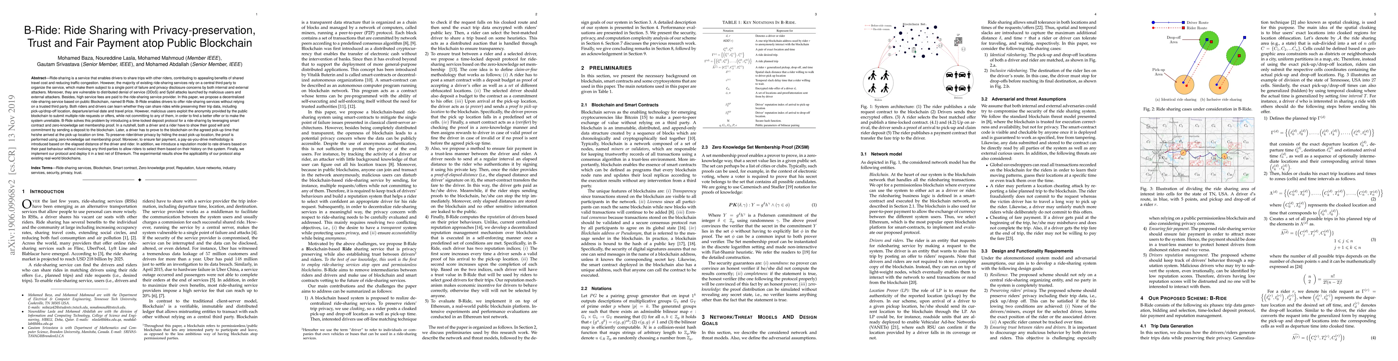 A new blockchain-based ride-sharing service, B-Ride, uses smart contracts and zero-knowledge proofs to ensure privacy, fairness, and trust in shared trips while preventing malicious behavior.