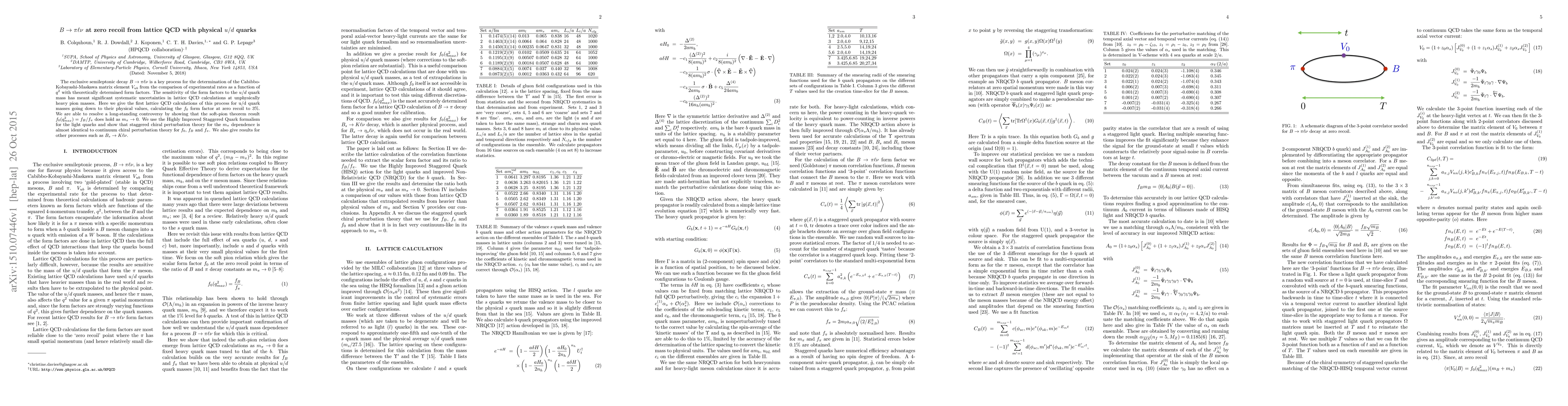 The exclusive semileptonic decay $B \rightarrow \pi \ell \nu$ is a key process for the determination of the Cabibbo-Kobayashi-Maskawa matrix element $V_{ub}$ from the comparison of experimental rates as a function of $q^2$ with theoretically determined form factors. The sensitivity of the form factors to the $u/d$ quark mass has meant significant systematic uncertainties in lattice QCD calculations at unphysically heavy pion masses. Here we give the first lattice QCD calculations of this process for u/d quark masses going down to their physical values, calculating the $f_0$ form factor at zero recoil to 3\%. We are able to resolve a long-standing controversy by showing that the soft-pion theorem result $f_0(q^2_{max}) = f_B/f_{\pi}$ does hold as $m_{\pi} \rightarrow 0$. We use the Highly Improved Staggered Quark formalism for the light quarks and show that staggered chiral perturbation theory for the $m_{\pi}$ dependence is almost identical to continuum chiral perturbation theory for $f_0$, $f_B$ and $f_{\pi}$. We also give results for other processes such as $B_s \rightarrow K \ell \nu$.