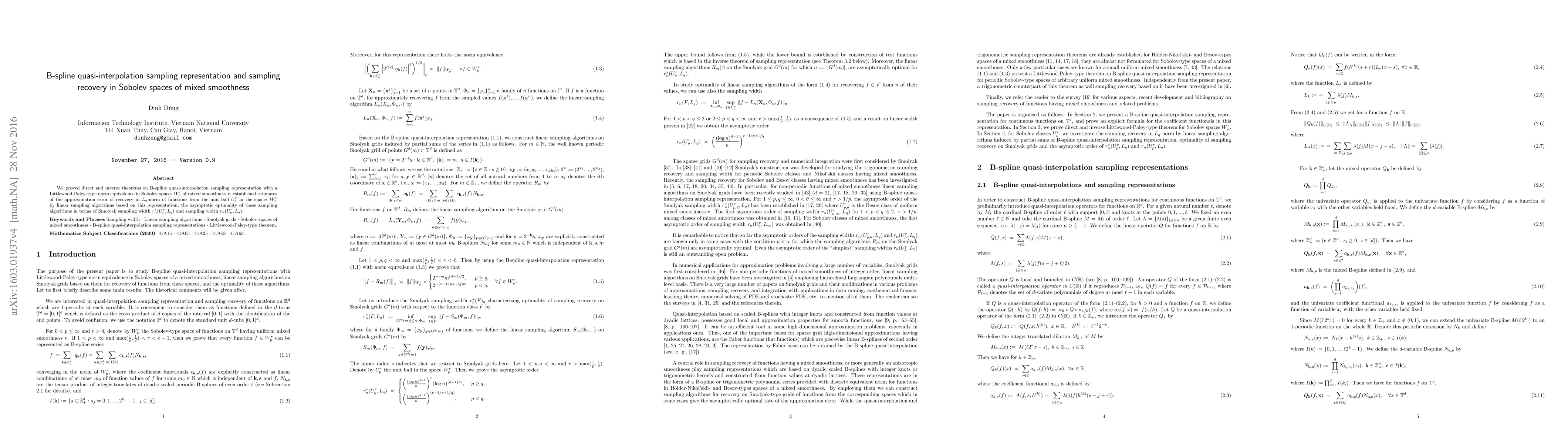 This paper establishes direct and inverse theorems for B-spline quasi-interpolation sampling representation in Sobolev spaces of mixed smoothness, proving Littlewood-Paley-type norm equivalence and asymptotic optimality of sampling algorithms based on this representation.