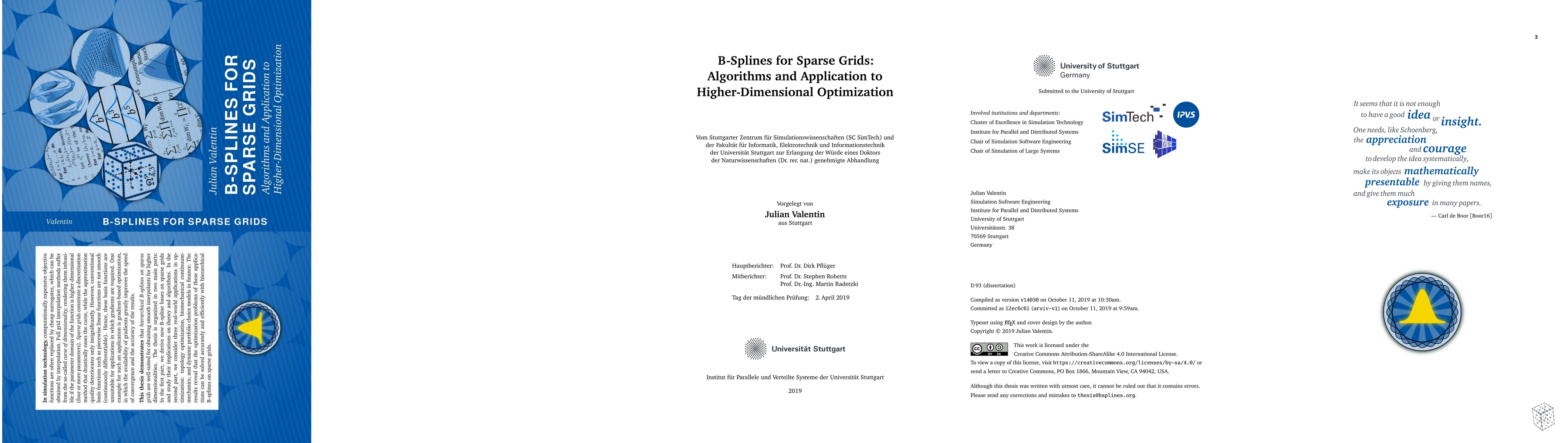 In simulation technology, computationally expensive objective functions are often replaced by cheap surrogates, which can be obtained by interpolation. Full grid interpolation methods suffer from the so-called curse of dimensionality, rendering them infeasible if the parameter domain of the function is higher-dimensional (four or more parameters). Sparse grids constitute a discretization method that drastically eases the curse, while the approximation quality deteriorates only insignificantly. However, conventional basis functions such as piecewise linear functions are not smooth (continuously differentiable). Hence, these basis functions are unsuitable for applications in which gradients are required. One example for such an application is gradient-based optimization, in which the availability of gradients greatly improves the speed of convergence and the accuracy of the results. This thesis demonstrates that hierarchical B-splines on sparse grids are well-suited for obtaining smooth interpolants for higher dimensionalities. The thesis is organized in two main parts: In the first part, we derive new B-spline bases on sparse grids and study their implications on theory and algorithms. In the second part, we consider three real-world applications in optimization: topology optimization, biomechanical continuum-mechanics, and dynamic portfolio choice models in finance. The results reveal that the optimization problems of these applications can be solved accurately and efficiently with hierarchical B-splines on sparse grids.