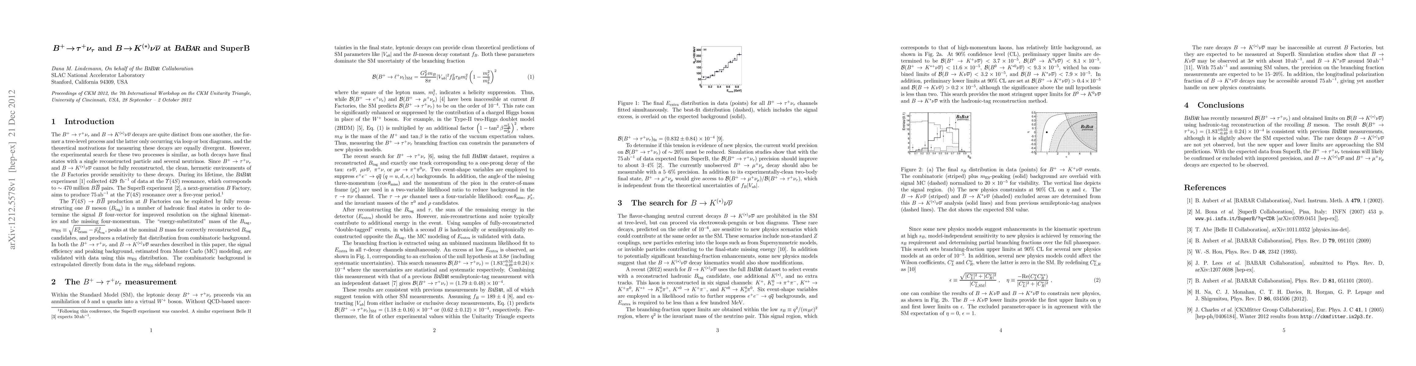 BaBar reports the first measurement of B+ → τ+ν and sets preliminary upper limits for B → K(*)νν̅ decays, using 470 x 10^6 BB pairs. The observed branching fraction for B+ → τ+ν is (1.83 ± 0.53 ± 0.24) x 10^-4, and upper limits at 90% CL for B → Kνν̅ and B → K*νν̅ are 3.2 x 10^-5 and 7.9 x 10^-5, respectively. Future improvements are anticipated with higher-luminosity B Factories like SuperB.