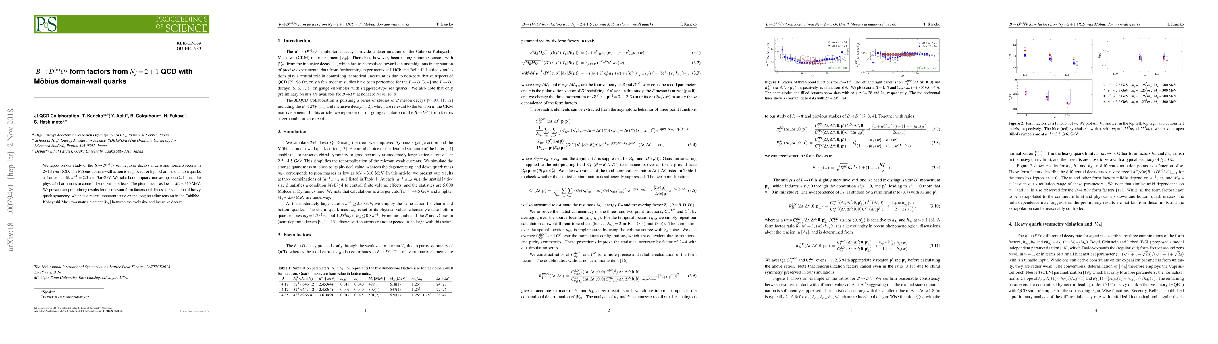 This research investigates the B → D(*)ℓν semileptonic decays using 2+1 flavor QCD with Möbius domain-wall quarks, focusing on form factors at various recoils. Preliminary results reveal insights into the violation of heavy quark symmetry, addressing discrepancies in the |V_{cb}| matrix element.