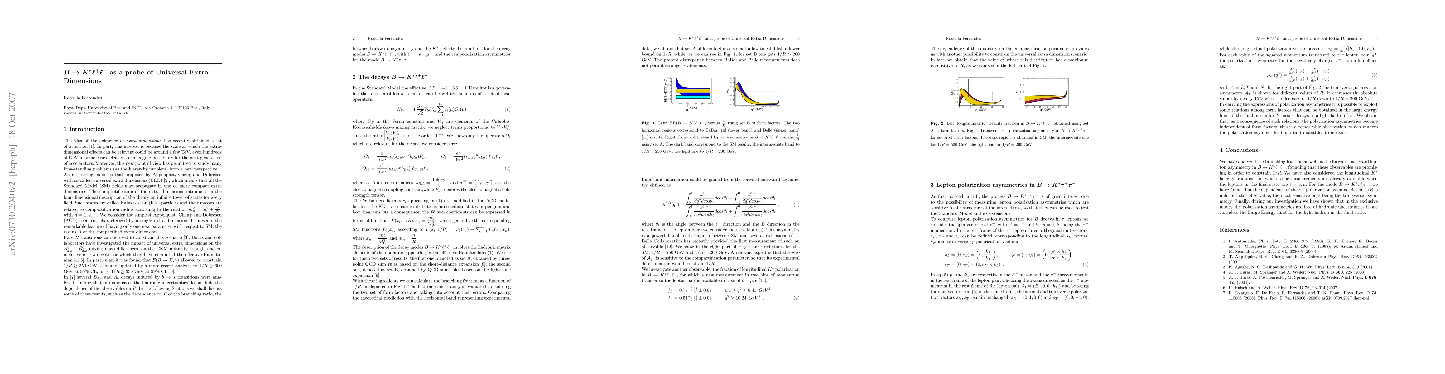 This paper investigates rare B decays via $b \to s$ transitions in the Standard Model and the Appelquist-Cheng-Dobrescu model featuring a universal extra dimension. It examines the impact of the extra dimension's radius on branching ratios, asymmetries, and helicity distributions for $B \to K^* \ell^+ \ell^-$ decays, and tau polarization in $B \to K^* \tau^+ \tau^-$.