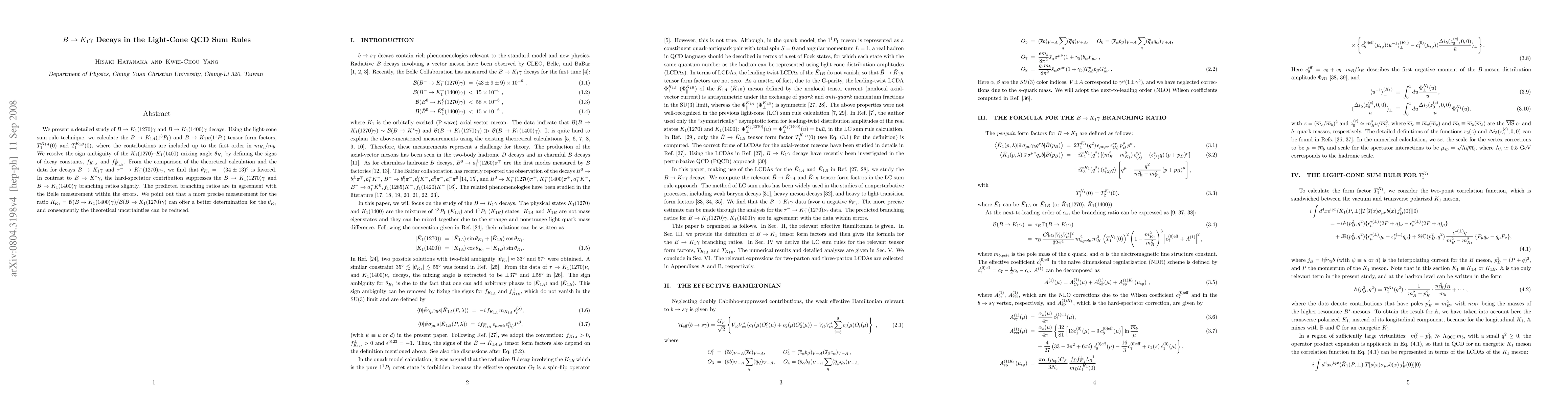This paper studies the $B\to K_1 \gamma$ decays using light-cone QCD sum rules to calculate tensor form factors and resolve the sign ambiguity of the $K_1(1270)$--$K_1(1400)$ mixing angle, finding $\theta_{K_1}=-(34\pm 13)^\circ$. The predicted branching ratios are consistent with experimental data, suggesting a need for more precise measurements to reduce theoretical uncertainties.