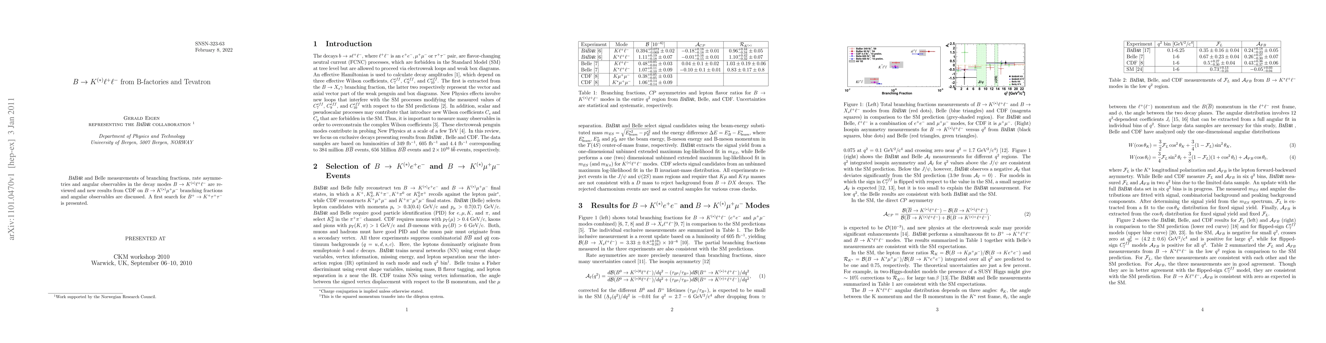 BABAR and Belle measurements of branching fractions, rate asymmetries and angular observables in the decay modes B \to K(*)l+l- are reviewed and new results from CDF on B \to K(*){\mu}+{\mu}- branching fractions and angular observables are discussed. A first search for B+ \to K+{\tau}+{\tau}- is presented.