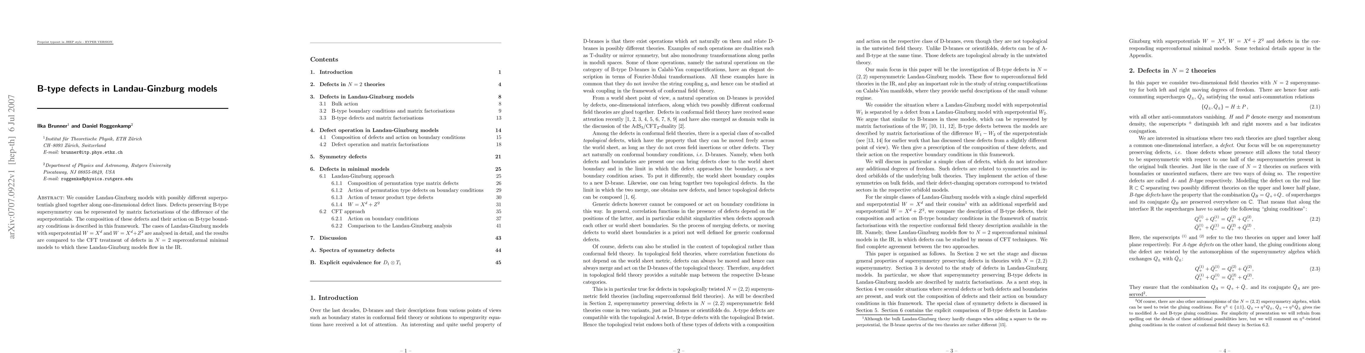 This paper examines Landau-Ginzburg models with B-type defects, represented via matrix factorizations, and analyzes their composition and effects on B-type boundary conditions. Detailed cases of superpotentials W=X^d and W=X^d+Z^2 are studied, comparing results with N=2 superconformal minimal models.