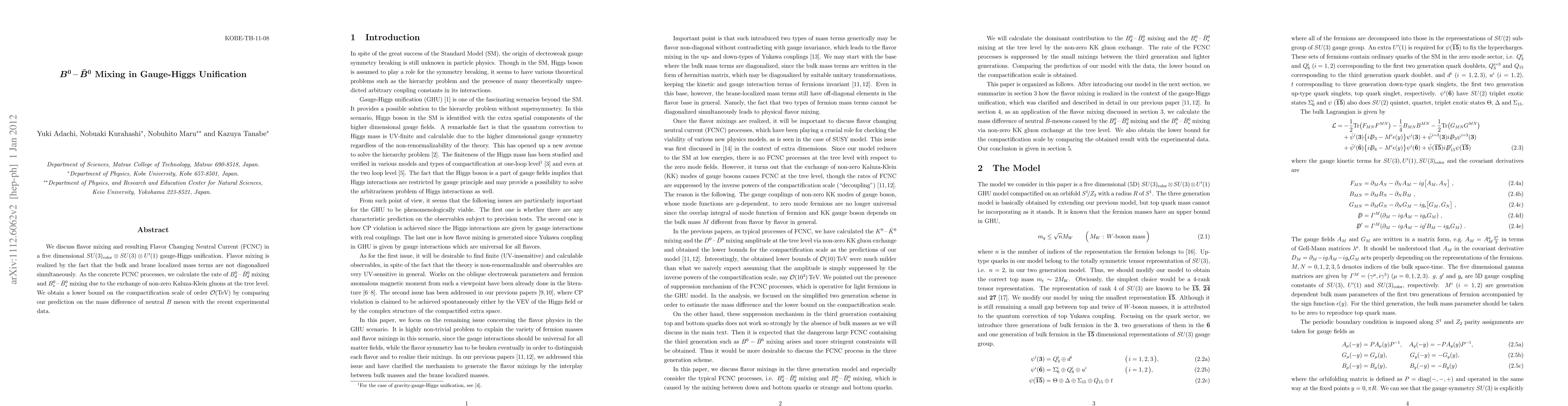 This paper investigates flavor mixing and FCNC in a five-dimensional gauge-Higgs unification model, calculating the rates of B^0_d-\bar B^0_d and B^0_s-\bar B^0_s mixing due to Kaluza-Klein gluons. It sets a lower bound on the compactification scale at O(TeV) by matching theoretical predictions with experimental data.