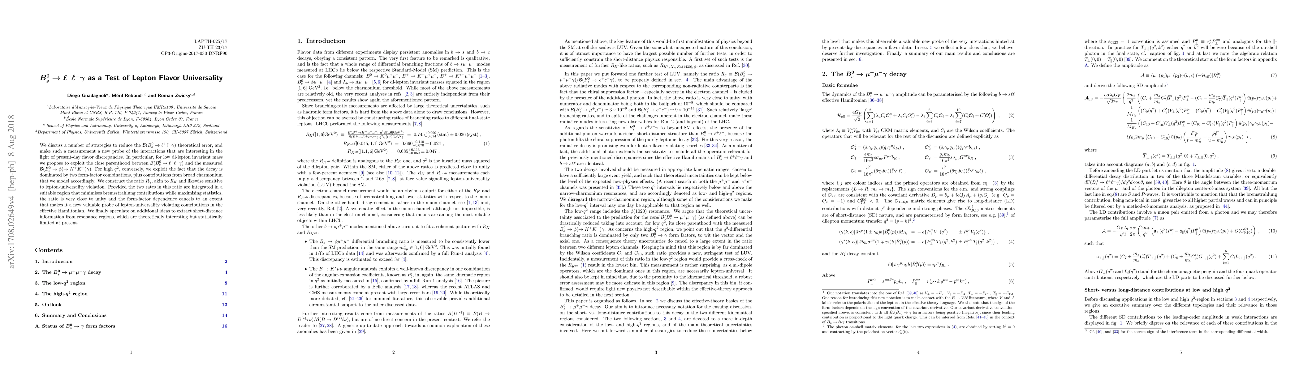 We discuss a number of strategies to reduce the $\mathcal B(B^0_s \to \ell^{+} \ell^{-} \gamma)$ theoretical error, and make such a measurement a new probe of the interactions that are interesting in the light of present-day flavor discrepancies. In particular, for low di-lepton invariant mass we propose to exploit the close parenthood between $\mathcal B(B^0_s \to \ell^{+} \ell^{-} \gamma)$ and the measured $\mathcal B(B^0_s \to \phi (\to K^+ K^-) \gamma)$. For high $q^2$, conversely, we exploit the fact that the decay is dominated by two form-factor combinations, plus contributions from broad charmonium that we model accordingly. We construct the ratio $R_\gamma$, akin to $R_K$ and likewise sensitive to lepton-universality violation. Provided the two rates in this ratio are integrated in a suitable region that minimises bremsstrahlung contributions while maximising statistics, the ratio is very close to unity and the form-factor dependence cancels to an extent that makes it a new valuable probe of lepton-universality violating contributions in the effective Hamiltonian. We finally speculate on additional ideas to extract short-distance information from resonance regions, which are theoretically interesting but statistically limited at present.