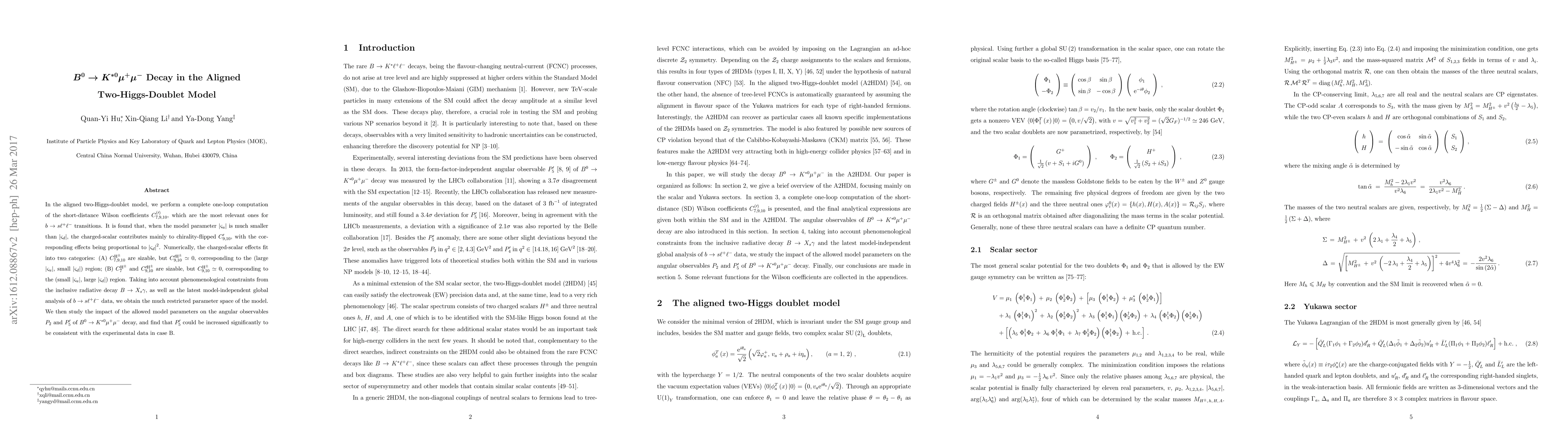 In the aligned two-Higgs-doublet model, we perform a complete one-loop computation of the short-distance Wilson coefficients $C_{7,9,10}^{(\prime)}$, which are the most relevant ones for $b\to s\ell^+\ell^-$ transitions. It is found that, when the model parameter $\left|\varsigma_u\right|$ is much smaller than $\left|\varsigma_d\right|$, the charged-scalar contributes mainly to chirality-flipped $C_{9,10}^\prime$, with the corresponding effects being proportional to $\left|\varsigma_d\right|^2$. Numerically, the charged-scalar effects fit into two categories: (A) $C_{7,9,10}^\mathrm{H^\pm}$ are sizable, but $C_{9,10}^{\prime\mathrm{H^\pm}}\simeq0$, corresponding to the (large $\left|\varsigma_u\right|$, small $\left|\varsigma_d\right|$) region; (B) $C_7^\mathrm{H^\pm}$ and $C_{9,10}^{\prime\mathrm{H^\pm}}$ are sizable, but $C_{9,10}^\mathrm{H^\pm}\simeq0$, corresponding to the (small $\left|\varsigma_u\right|$, large $\left|\varsigma_d\right|$) region. Taking into account phenomenological constraints from the inclusive radiative decay $B\to X_s\gamma$, as well as the latest model-independent global analysis of $b\to s\ell^+\ell^-$ data, we obtain the much restricted parameter space of the model. We then study the impact of the allowed model parameters on the angular observables $P_2$ and $P_5'$ of $B^0\to K^{\ast 0}\mu^+\mu^-$ decay, and find that $P_5'$ could be increased significantly to be consistent with the experimental data in case B.