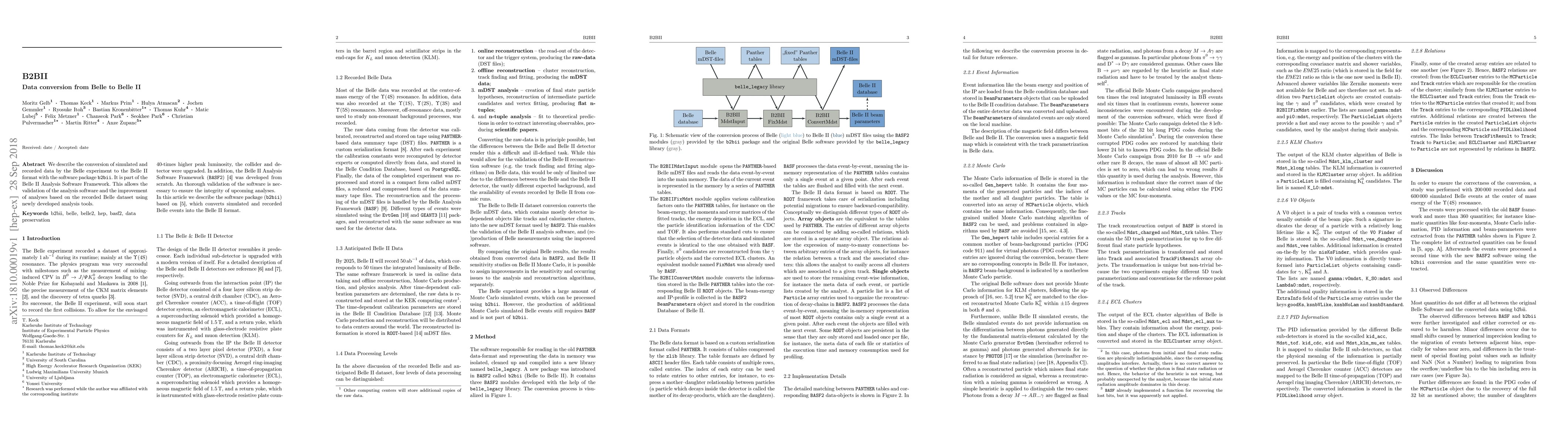 We describe the conversion of simulated and recorded data by the Belle experiment to the Belle~II format with the software package \texttt{b2bii}. It is part of the Belle~II Analysis Software Framework. This allows the validation of the analysis software and the improvement of analyses based on the recorded Belle dataset using newly developed analysis tools.