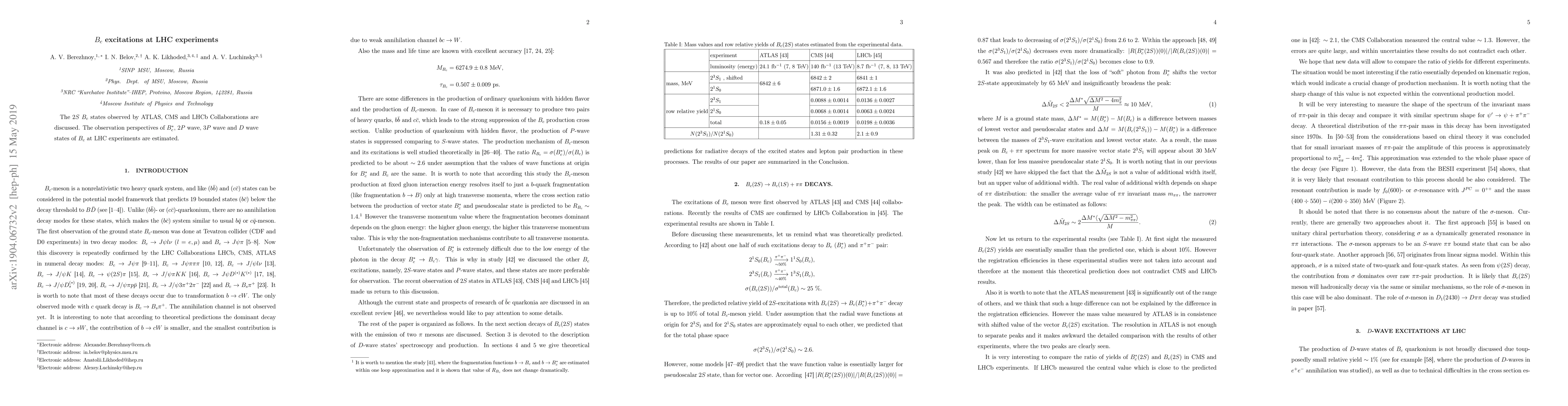 The $2S$ $B_c$ states observed by ATLAS, CMS and LHCb Collaborations are discussed. The observation perspectives of $B_c^*$, $2P$ wave, $3P$ wave and $D$ wave states of $B_c$ at LHC experiments are estimated.