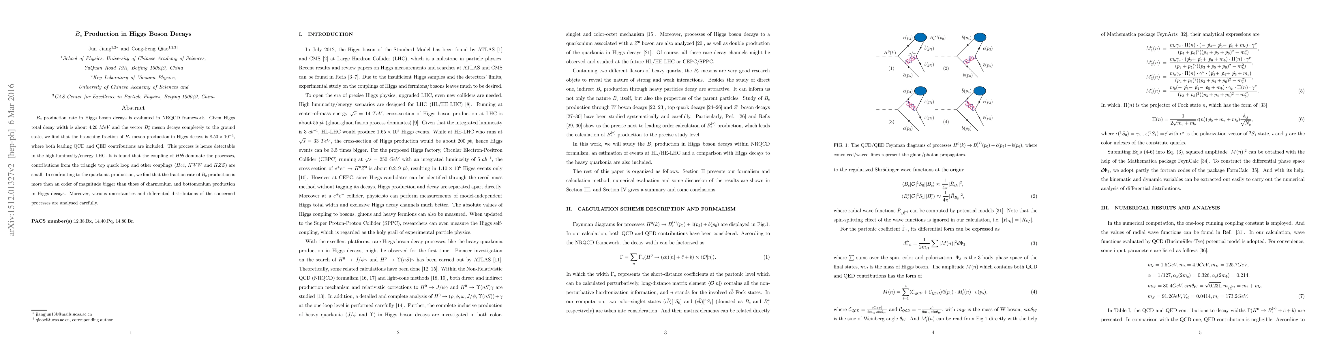 Researchers used NRQCD to estimate $B_c$ production rate in Higgs boson decays, finding a branching fraction of $8.50 imes10^{-4}$, which is more than an order of magnitude higher than quarkonia production rates.