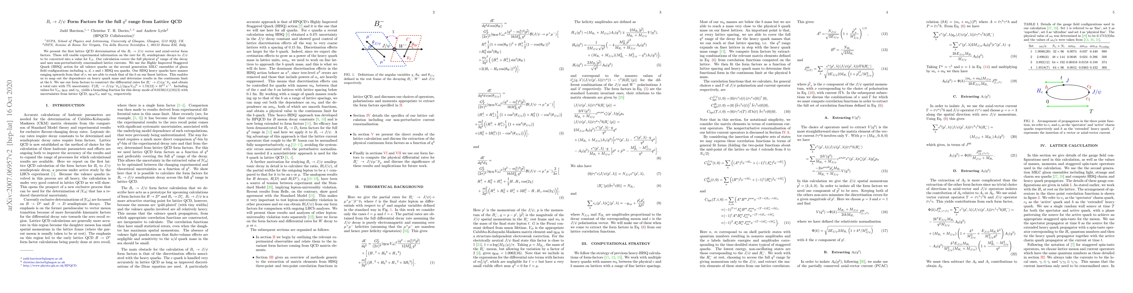 Researchers used lattice QCD to calculate form factors for $B_c ightarrow J/ opsych$ decays, enabling the estimation of $V_{cb}$ values and branching fraction predictions with 7% uncertainty.
