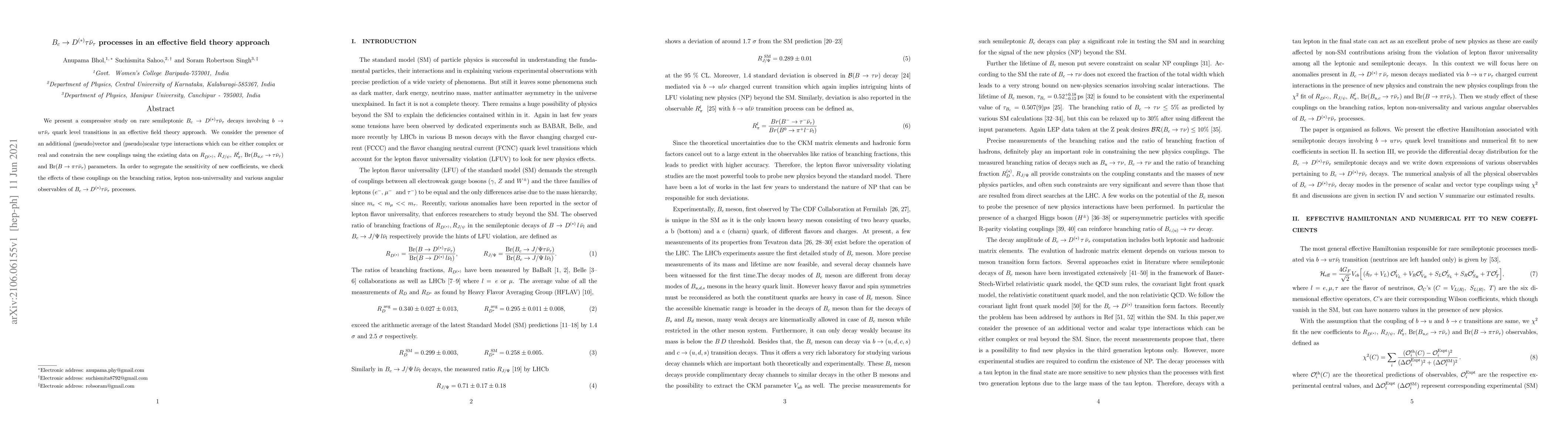 We present a compressive study on rare semileptonic $B_c \to D^{(*)}\tau \bar \nu_\tau$ decays involving $b \to u \tau \bar \nu_\tau$ quark level transitions in an effective field theory approach. We consider the presence of an additional (pseudo)vector and (pseudo)scalar type interactions which can be either complex or real and constrain the new couplings using the existing data on $R_{D^{(*)}}$, $R_{J/\psi}$, $R_\pi^l$, Br($B_{u,c} \to \tau \bar \nu_\tau$) and Br($B \to\pi \tau \bar \nu_\tau$) parameters. In order to segregate the sensitivity of new coefficients, we check the effects of these couplings on the branching ratios, lepton non-universality and various angular observables of $B_c \to D^{(*)}\tau \bar \nu_\tau$ processes.