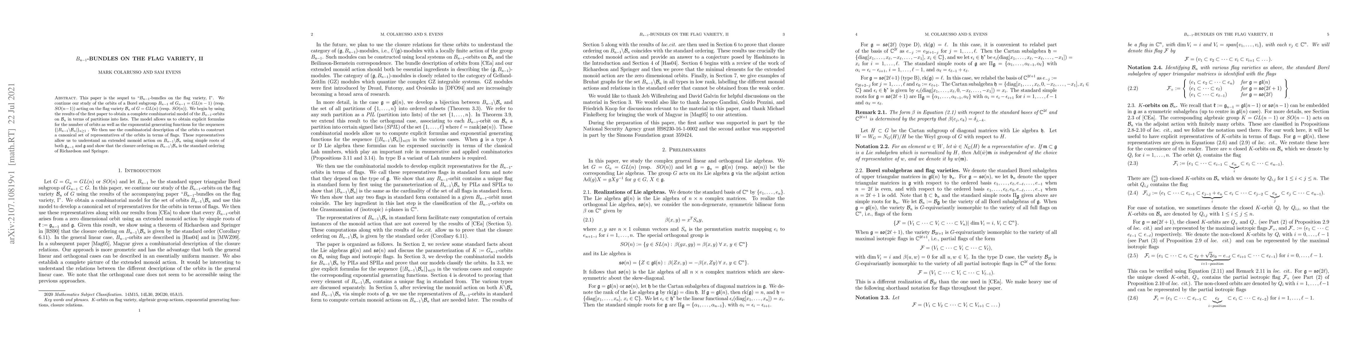 This paper is the sequel to ``$B_{n-1}$-bundles on the flag variety, I". We continue our study of the orbits of a Borel subgroup $B_{n-1}$ of $G_{n-1}=GL(n-1)$ (resp. $SO(n-1)$) acting on the flag variety $\mathcal{B}_{n}$ of $G=GL(n)$ (resp. $SO(n)$). We begin by using the results of the first paper to obtain a complete combinatorial model of the $B_{n-1}$-orbits on $\mathcal{B}_{n}$ in terms of partitions into lists. The model allows us to obtain explicit formulas for the number of orbits as well as the exponential generating functions for the sequences $\{|B_{n-1}\backslash \mathcal{B}_{n}|\}_{n\geq 1}$ . We then use the combinatorial description of the orbits to construct a canonical set of representatives of the orbits in terms of flags. These representatives allow us to understand an extended monoid action on $B_{n-1}\backslash \mathcal{B}_{n}$ using simple roots of both $\mathfrak{g}_{n-1}$ and $\mathfrak{g}$ and show that the closure ordering on $B_{n-1}\backslash \mathcal{B}_{n}$ is the standard ordering of Richardson and Springer.