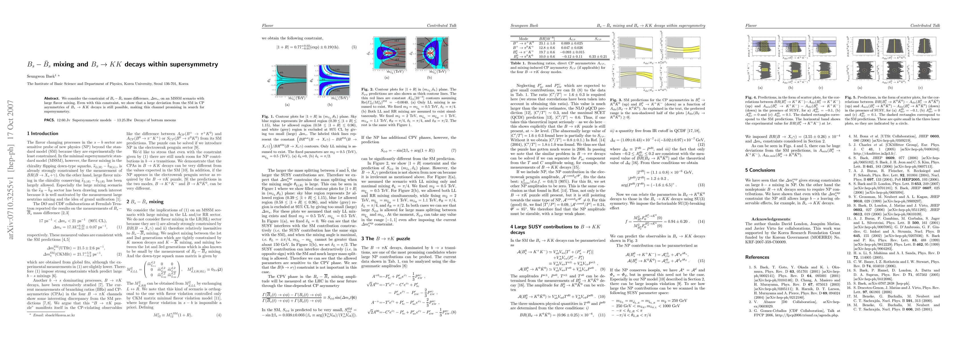 We consider the constraint of $B_s-\bar{B}_s$ mass difference, $\Delta m_s$, on an MSSM scenario with large flavor mixing. Even with this constraint, we show that a large deviation from the SM in CP asymmetries of $B_s \to KK$ decays is still possible, making this channel promising in search for supersymmetry.