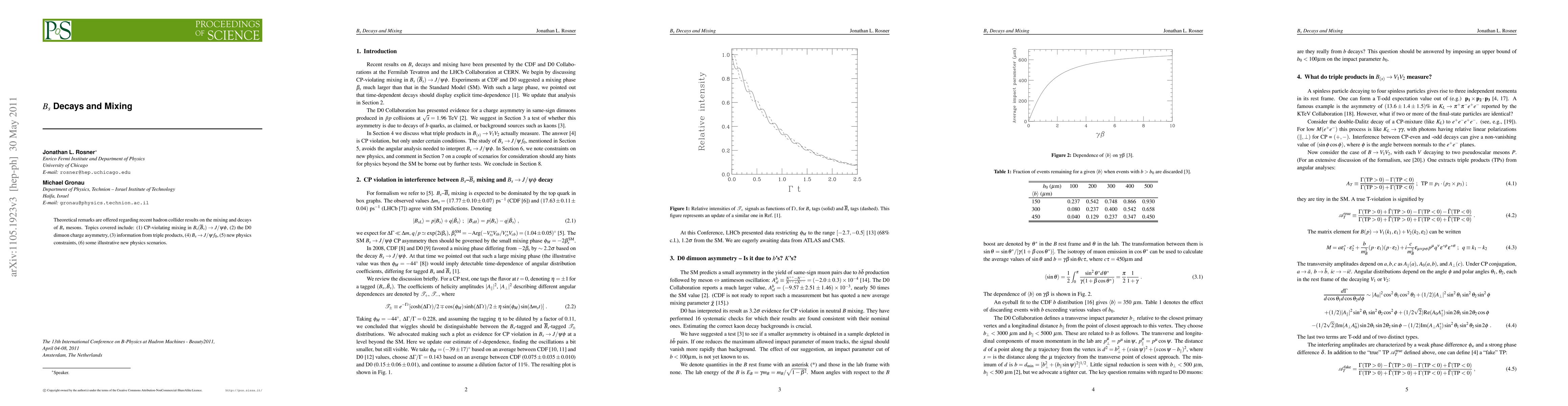 Theoretical remarks are offered regarding recent hadron collider results on the mixing and decays of $B_s$ mesons. Topics covered include: (1) CP-violating mixing in $B_s(\ob_s) \to J/\psi \phi$, (2) the D0 dimuon charge asymmetry, (3) information from triple products, (4) $B_s \to J/\psi f_0$, (5) new physics constraints, (6) some illustrative new physics scenarios.