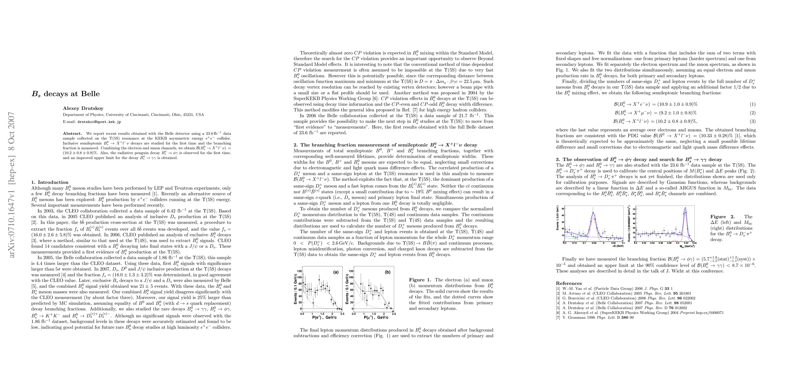 The Belle detector analyzed 23.6 fb^{-1} of data collected on the Y(5S) resonance, reporting the first measurement of the inclusive semileptonic B_s^0 decay branching fraction as Bf(B_s^0 -> X^+ l^- \nu) = (10.2 ± 0.8 ± 0.9)%. Additionally, the study observed the radiative penguin decay B_s^0 -> \phi \gamma for the first time and provided an improved upper limit for B_s^0 -> \gamma \gamma.
