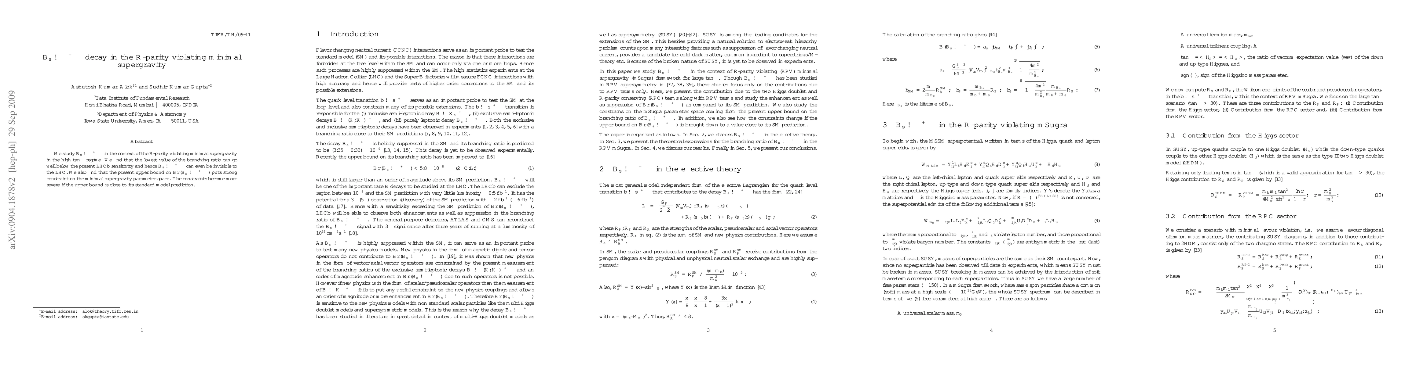 This paper investigates the B_s --> mu+ mu- decay within the framework of R-parity violating minimal supergravity, particularly in high tan beta scenarios. It concludes that the branching ratio could be significantly lower than LHCb's current sensitivity, potentially rendering the decay invisible to the LHC, and highlights the stringent constraints imposed by the upper bound on this decay on the parameter space.