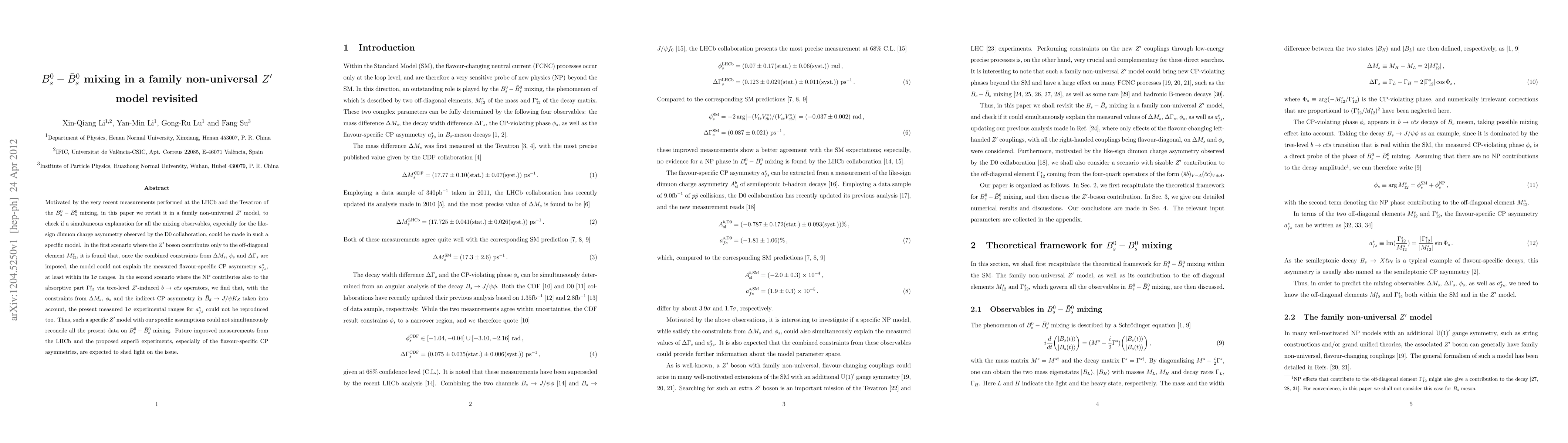 This paper revisits $B_s^0-\bar B_s^0$ mixing in a family non-universal $Z^{\prime}$ model, finding that neither scenario can simultaneously reconcile all current experimental data, especially the like-sign dimuon charge asymmetry. Future improved measurements are anticipated to clarify the issue.