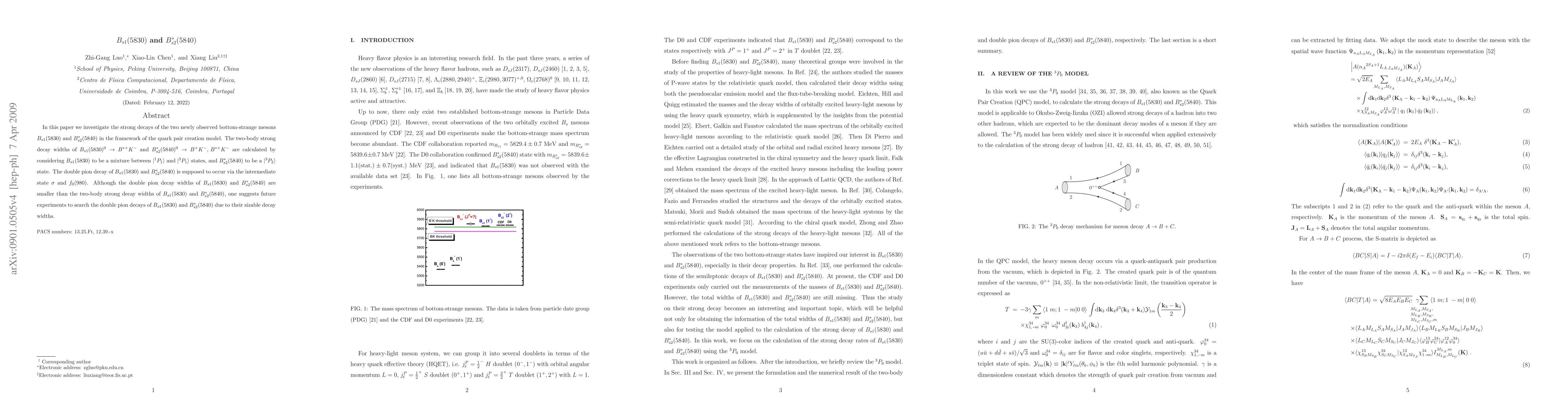 The paper presents a detailed calculation of two-body strong decays and double pion decays for Bs1(5830) and Bs2*(5840) using the quark pair creation model in the 3P0 framework.