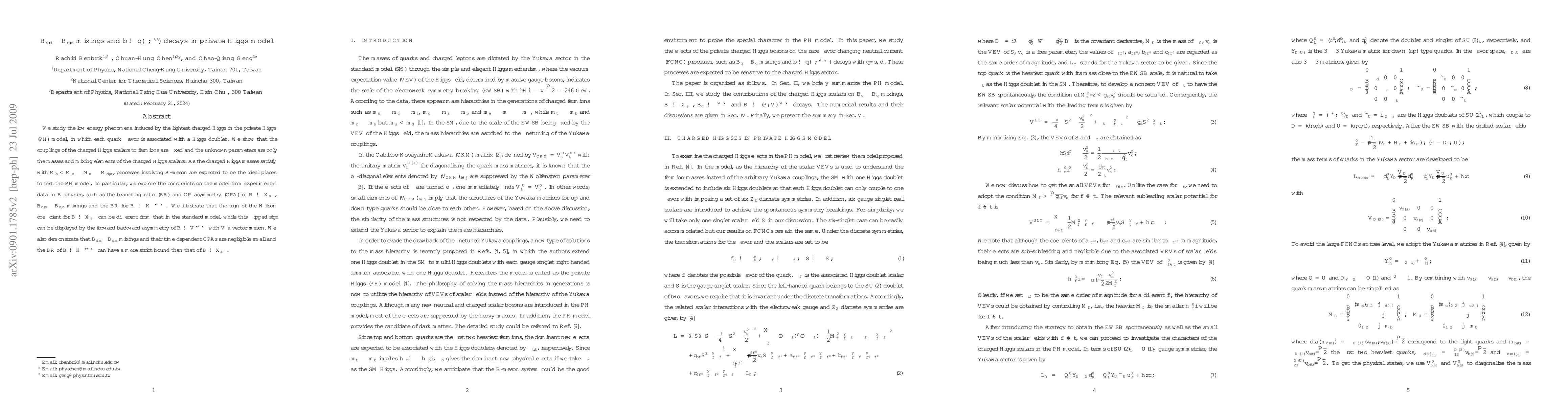 the private Higgs (PH) model, in which each quark flavor is associated with a