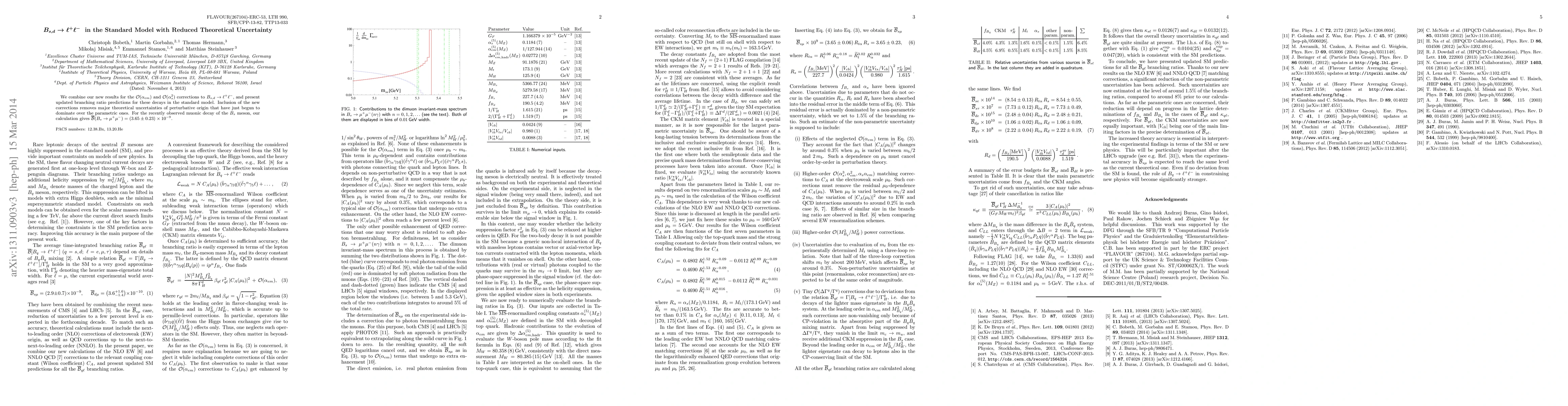 We combine our new results for the O(alpha_em) and O(alpha_s^2) corrections to B_{s,d} -> l^+ l^-, and present updated branching ratio predictions for these decays in the standard model. Inclusion of the new corrections removes major theoretical uncertainties of perturbative origin that have just begun to dominate over the parametric ones. For the recently observed muonic decay of the B_s meson, our calculation gives BR(B_s -> mu^+ mu^-) = (3.65 +_ 0.23) * 10^(-9).