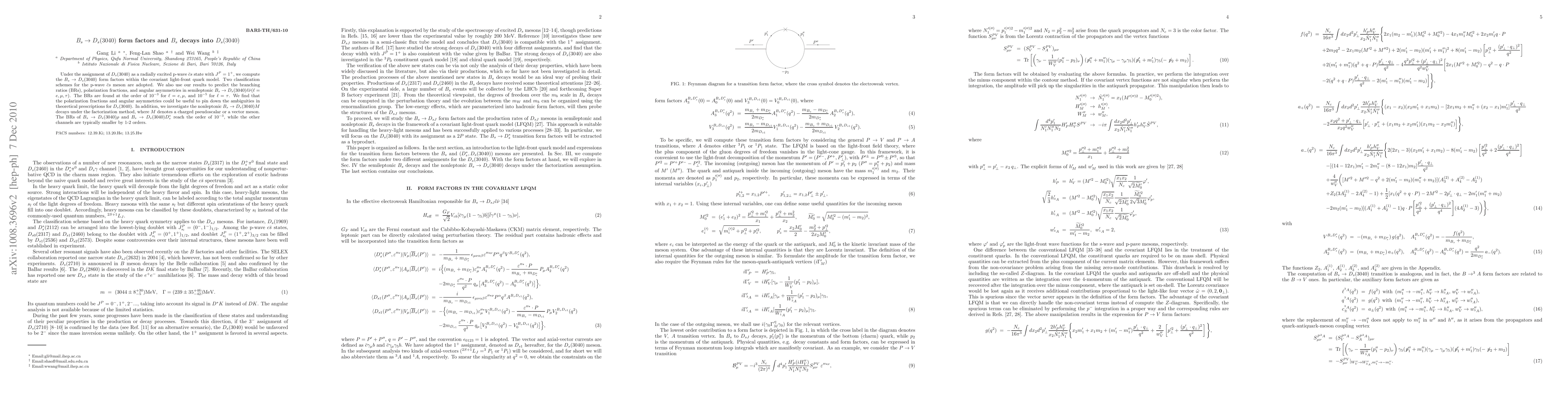 This paper computes $B_s\to D_s(3040)$ form factors within the covariant light-front quark model and predicts branching ratios, polarization fractions, and angular asymmetries for semileptonic decays. The branching ratios are found to be around $10^{-3}$ for $e$ and $\mu$, and $10^{-5}$ for $\tau$, while nonleptonic decays show similar branching ratios for $B_s\to D_s(3040)\rho$ and $B_s\to D_s(3040)D_s^*$.