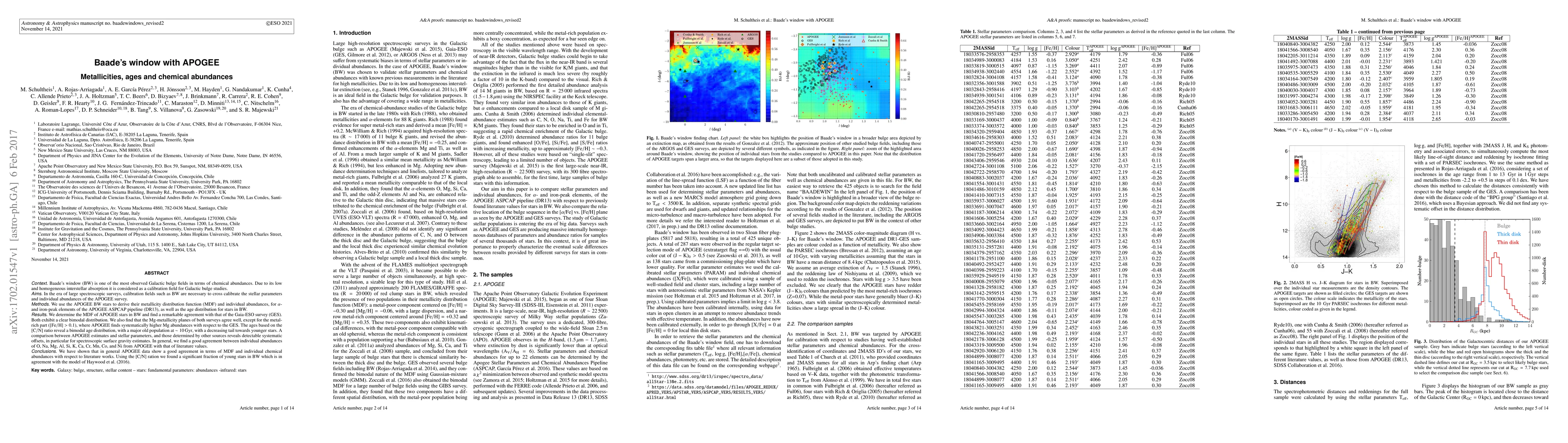 This paper investigates Baade's window using APOGEE survey data, finding a bimodal metallicity distribution function and age distribution. It confirms good agreement between APOGEE's chemical abundances and literature values, with notable systematic offsets in spectroscopic surface gravity estimates.